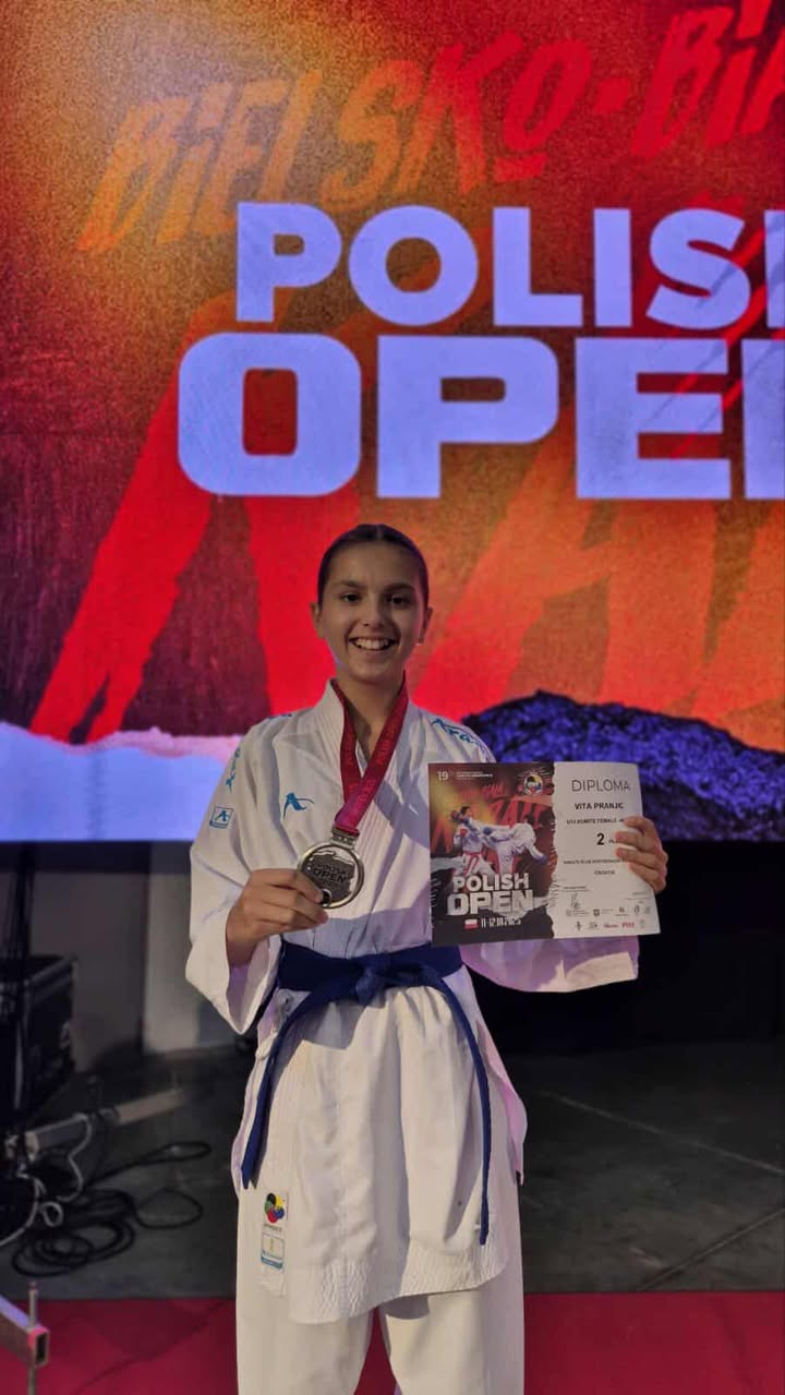 BIELSKO BIALA Učenica OŠ Hreljin iz Dramlja i članica Karate kluba Kostrena Vita Pranjić osvojila je drugo mjesto na natjecanju Polish Open u mjestu Bielsko Biala. Vita je visok plasman izborila u kategoriji U-12, do 40 kilograma. Na Polsih Openu nastupilo je 2.800 karatista iz 33 države, a u Vitinoj konkurenciji ogledalo se 38 natjecateljica. Vita je na putu do srebra bila bolja od dvije Ukrajinke, Austrijanke i Poljakinje. U finalu je bila bolja ukrajinska karatistica.