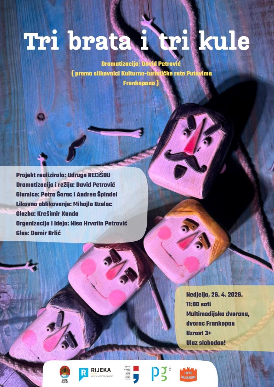 KRALJEVICA Turistička zajednica Grada Kraljevice poziva na čarobnu lutkarsku predstavu „Tri brata i tri kule“ koja će razveseliti najmlađe u sklopu programa SpringWave Kraljevica. Predstava je na rasporedu u nedjelju u 11 sati u Multimedijskoj dvorani dvorca Frankopan u Kraljevici.