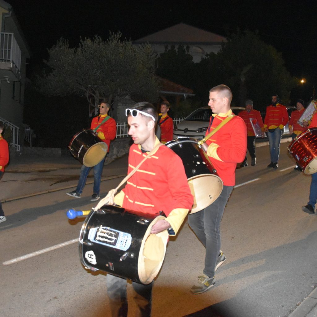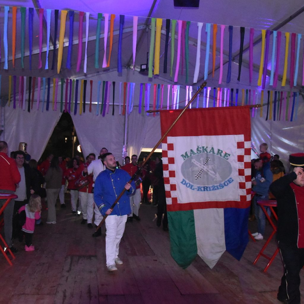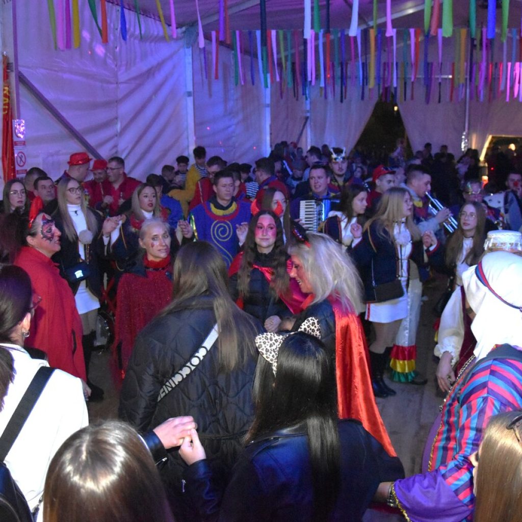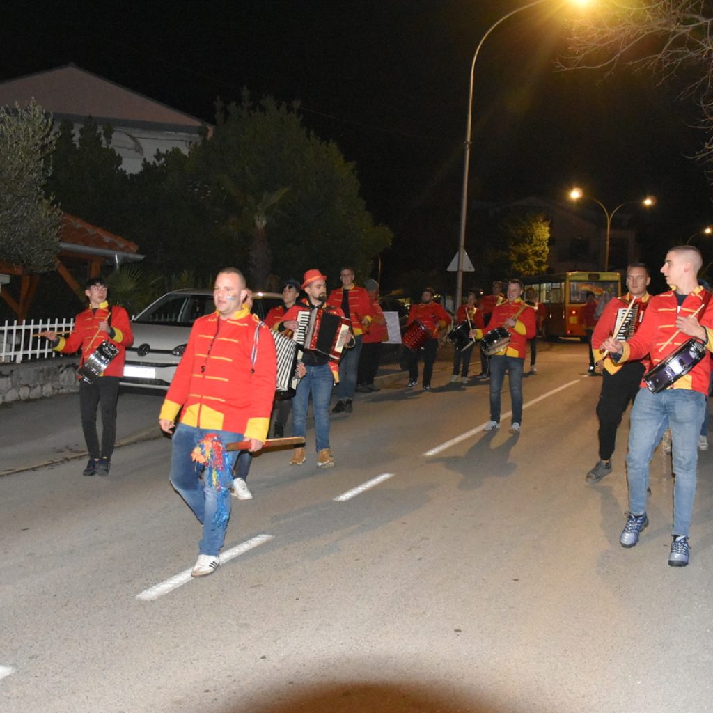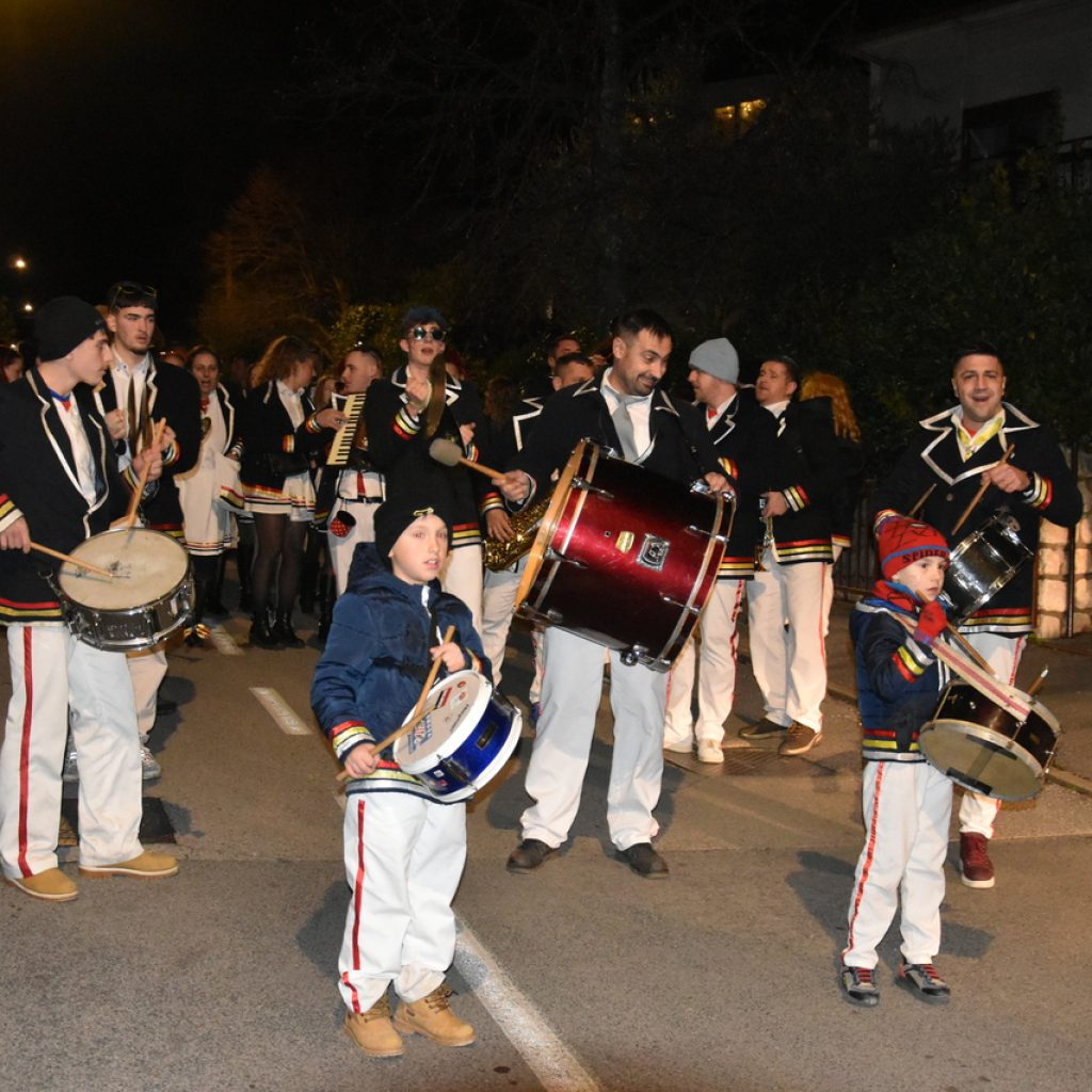 CRIKVENICA Maškare, mačkare, maškaroni, mesopustari, parade, krabulje iz Hrvatskog primorja, od Hreljina do Ledenica, došle su na Dugu uljepšati i čestitati 45. rođendan udruzi Duga. Grupa za grupom ulazila je u šator, pjesmom, bubnjevima i muzikom poželjela još toliko lijepih godina. U šatoru sve generacije Duge koja je na svoje maškarano putovanje spontano krenula 1981. godine. Veterani s Duge, crikveničkog naselja u kojem živi oko tisuću i pol stanovnika, tada nisu niti sanjali da će njihovo okupljanje prerasti u nešto što živi s Dugom i strašću prema maškarama 45 godina. Dio povijesti postat će i maškarani šator koji je prvi put podignut na Dugi. Kako je izgledala povijest Duge pročitajte u tekstu Parada Duga slavi 45. rođendan: krenulo je spontano, traperice i bijele košulje, a bubnjeve su “glumile” limenke.