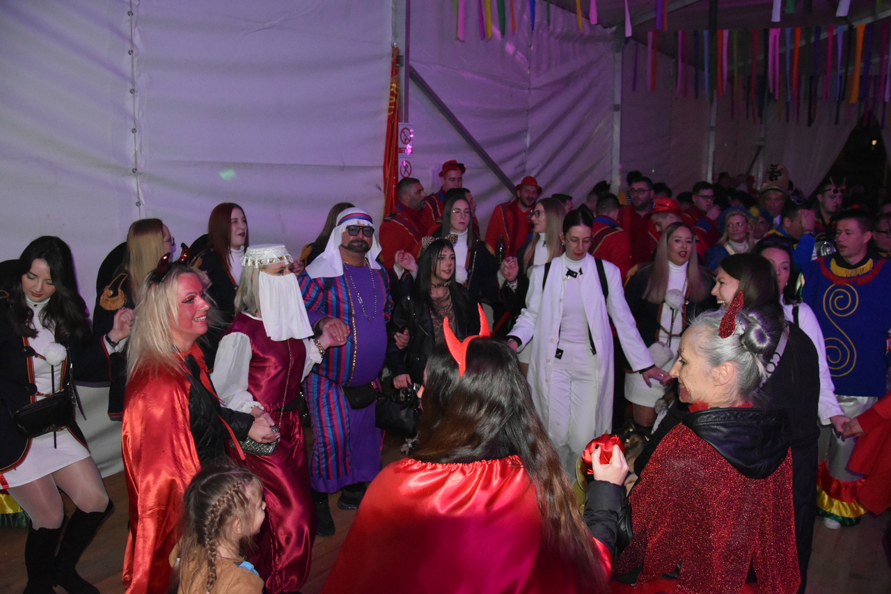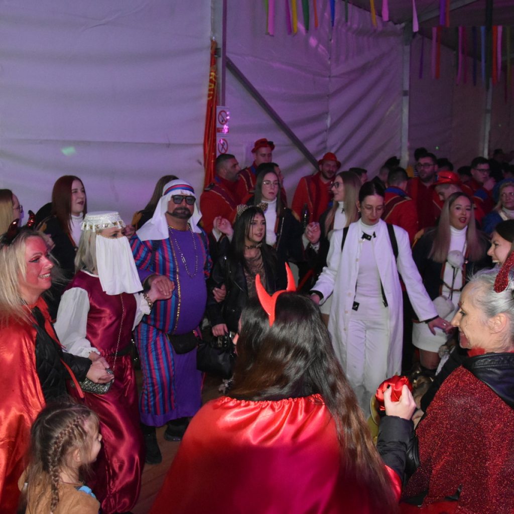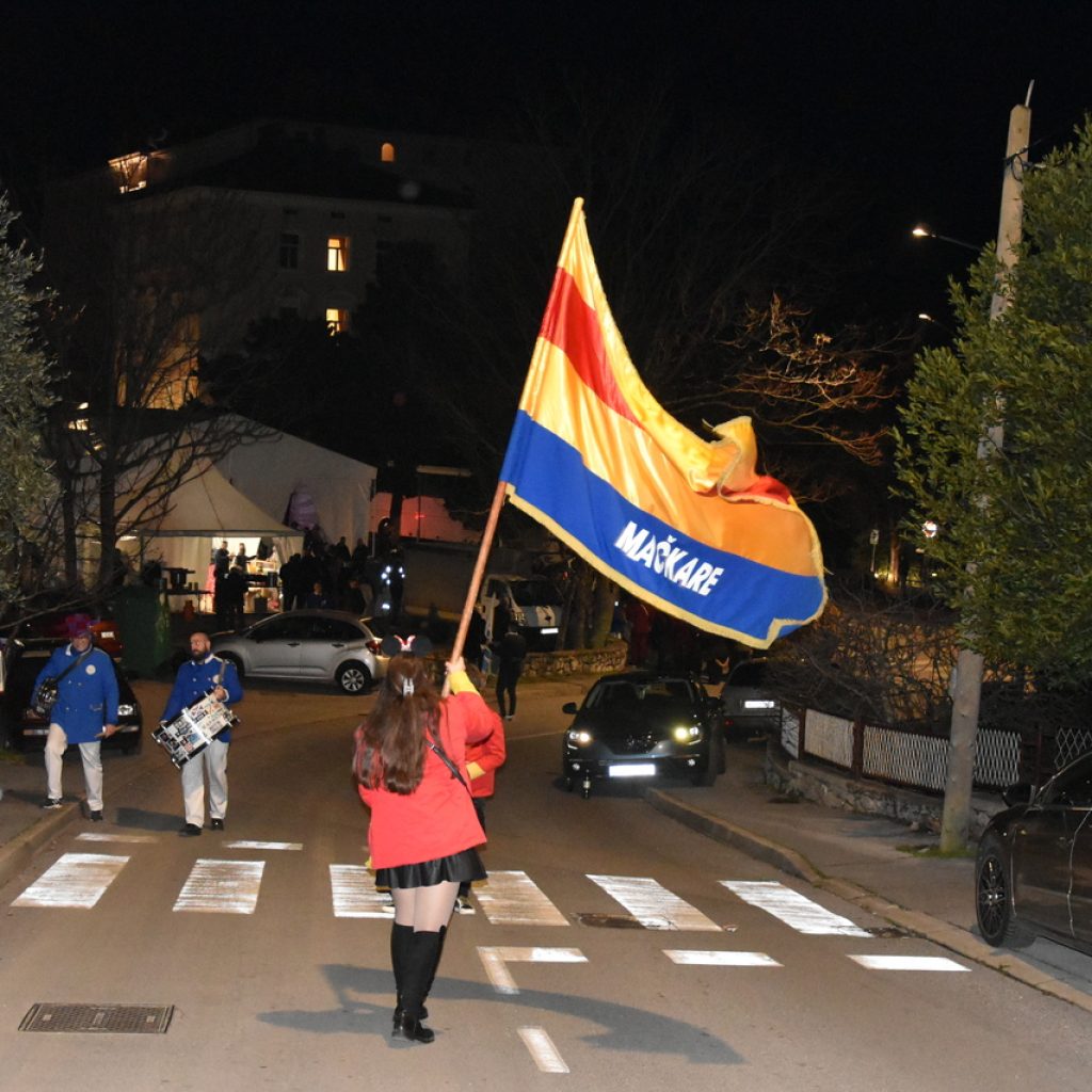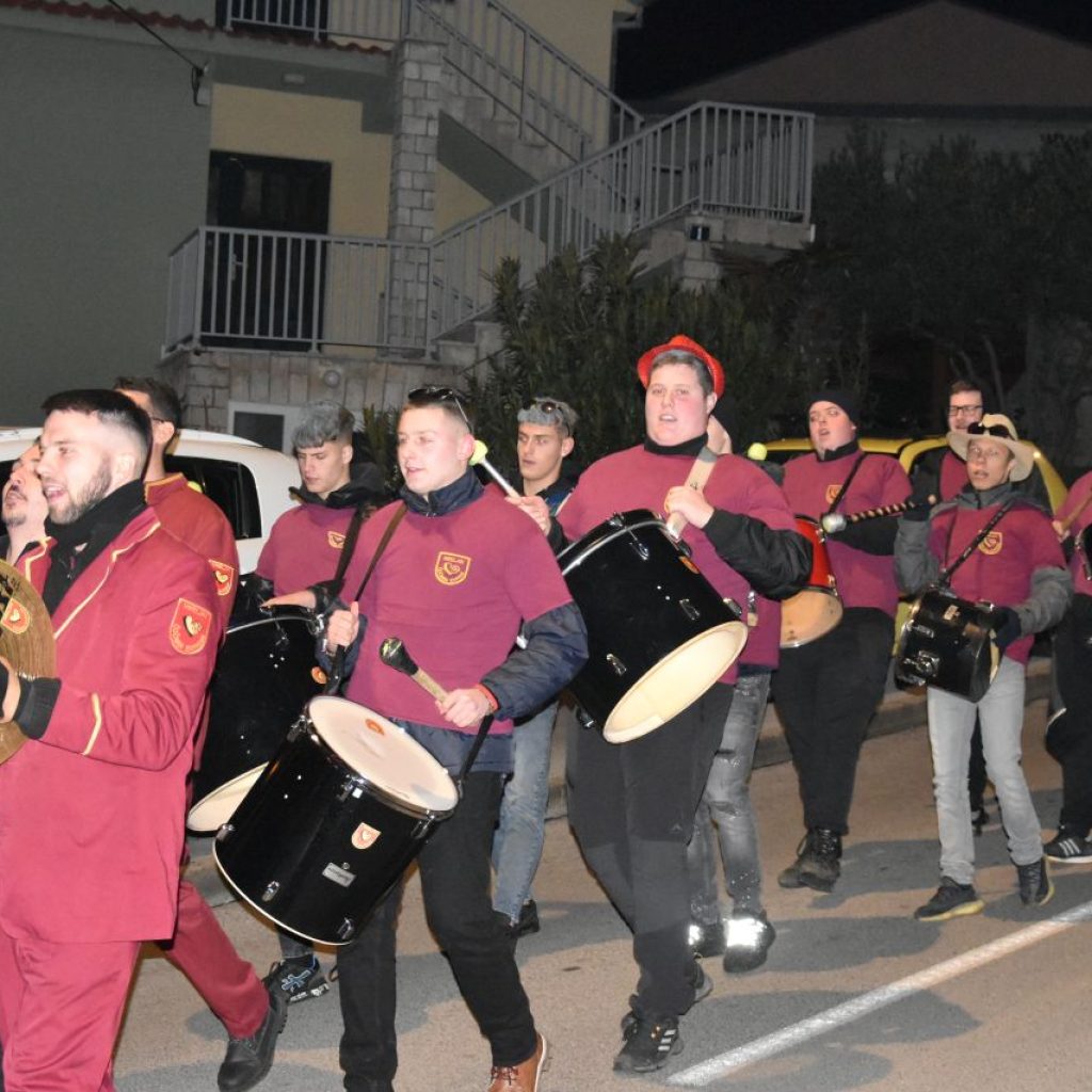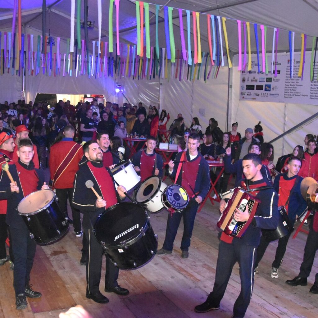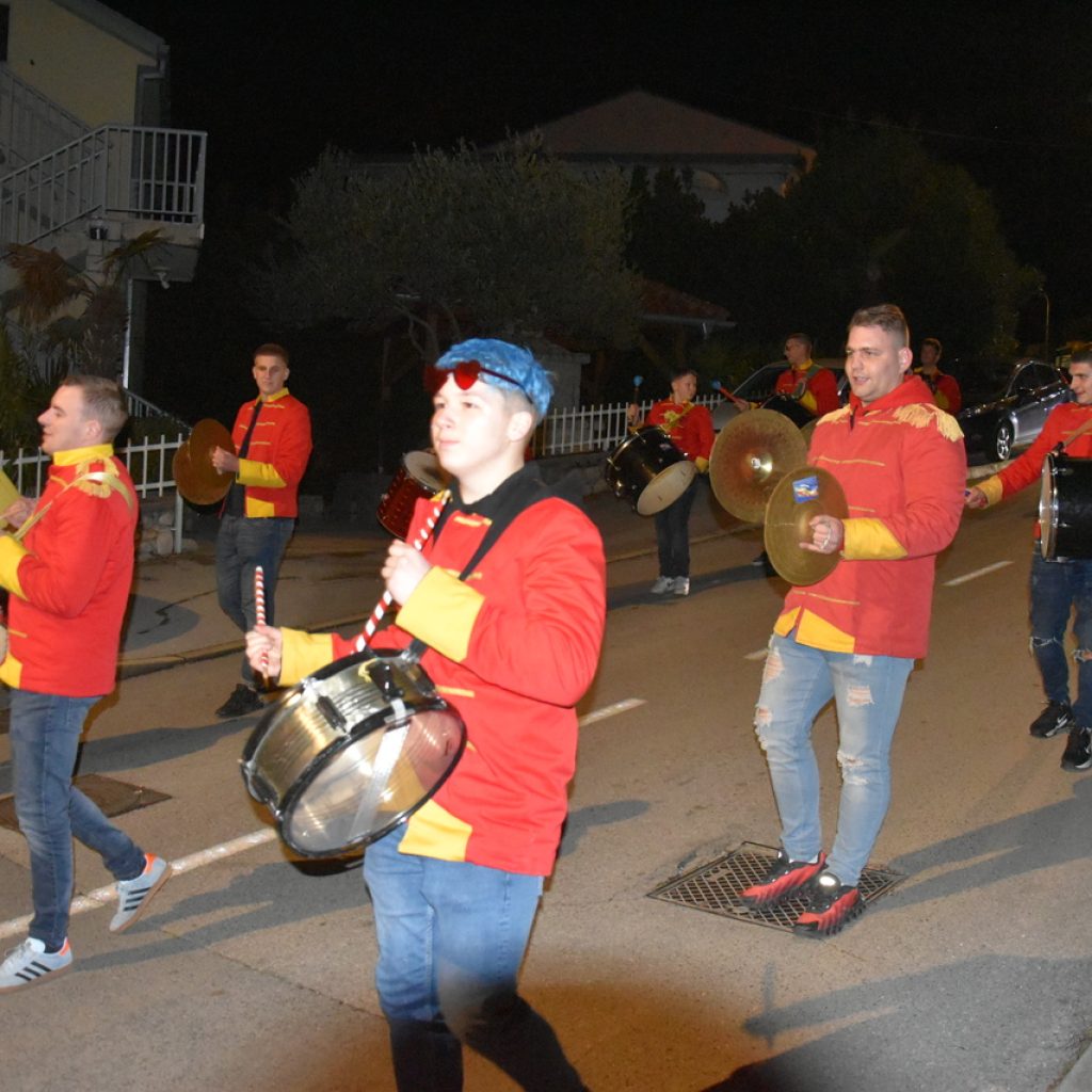 CRIKVENICA Maškare, mačkare, maškaroni, mesopustari, parade, krabulje iz Hrvatskog primorja, od Hreljina do Ledenica, došle su na Dugu uljepšati i čestitati 45. rođendan udruzi Duga. Grupa za grupom ulazila je u šator, pjesmom, bubnjevima i muzikom poželjela još toliko lijepih godina. U šatoru sve generacije Duge koja je na svoje maškarano putovanje spontano krenula 1981. godine. Veterani s Duge, crikveničkog naselja u kojem živi oko tisuću i pol stanovnika, tada nisu niti sanjali da će njihovo okupljanje prerasti u nešto što živi s Dugom i strašću prema maškarama 45 godina. Dio povijesti postat će i maškarani šator koji je prvi put podignut na Dugi. Kako je izgledala povijest Duge pročitajte u tekstu Parada Duga slavi 45. rođendan: krenulo je spontano, traperice i bijele košulje, a bubnjeve su “glumile” limenke.