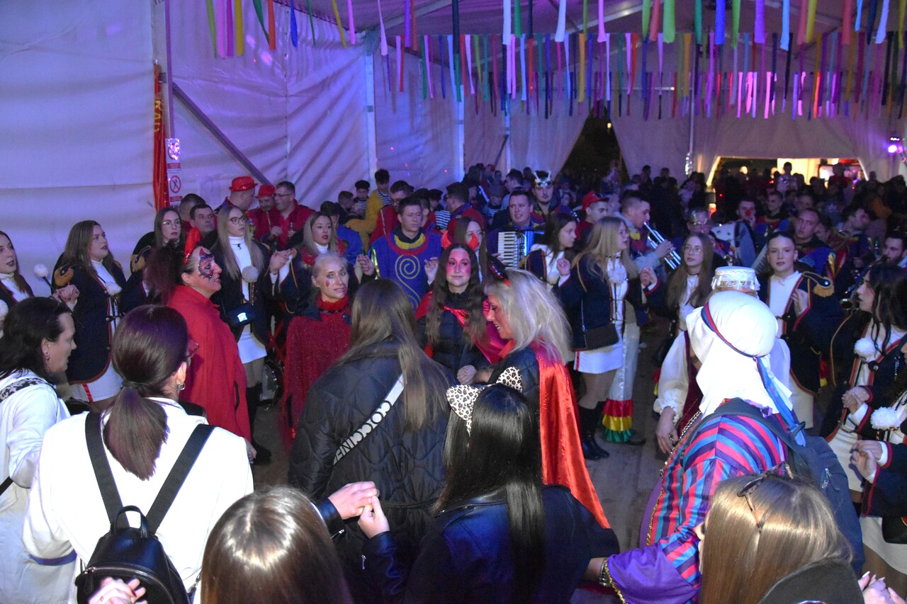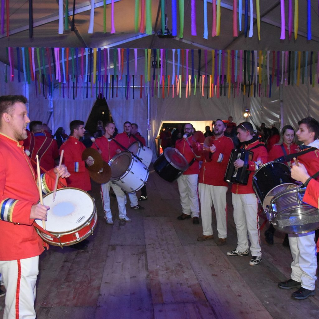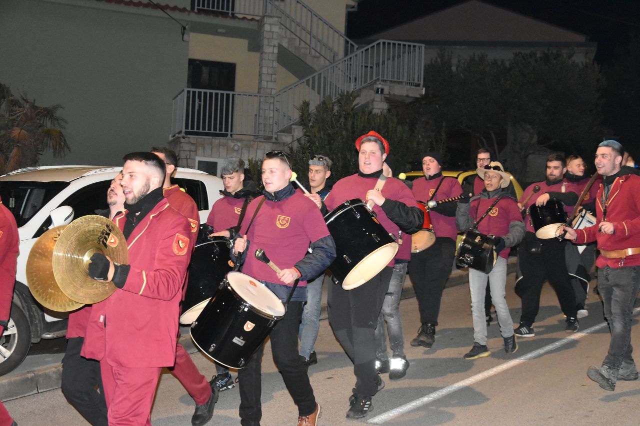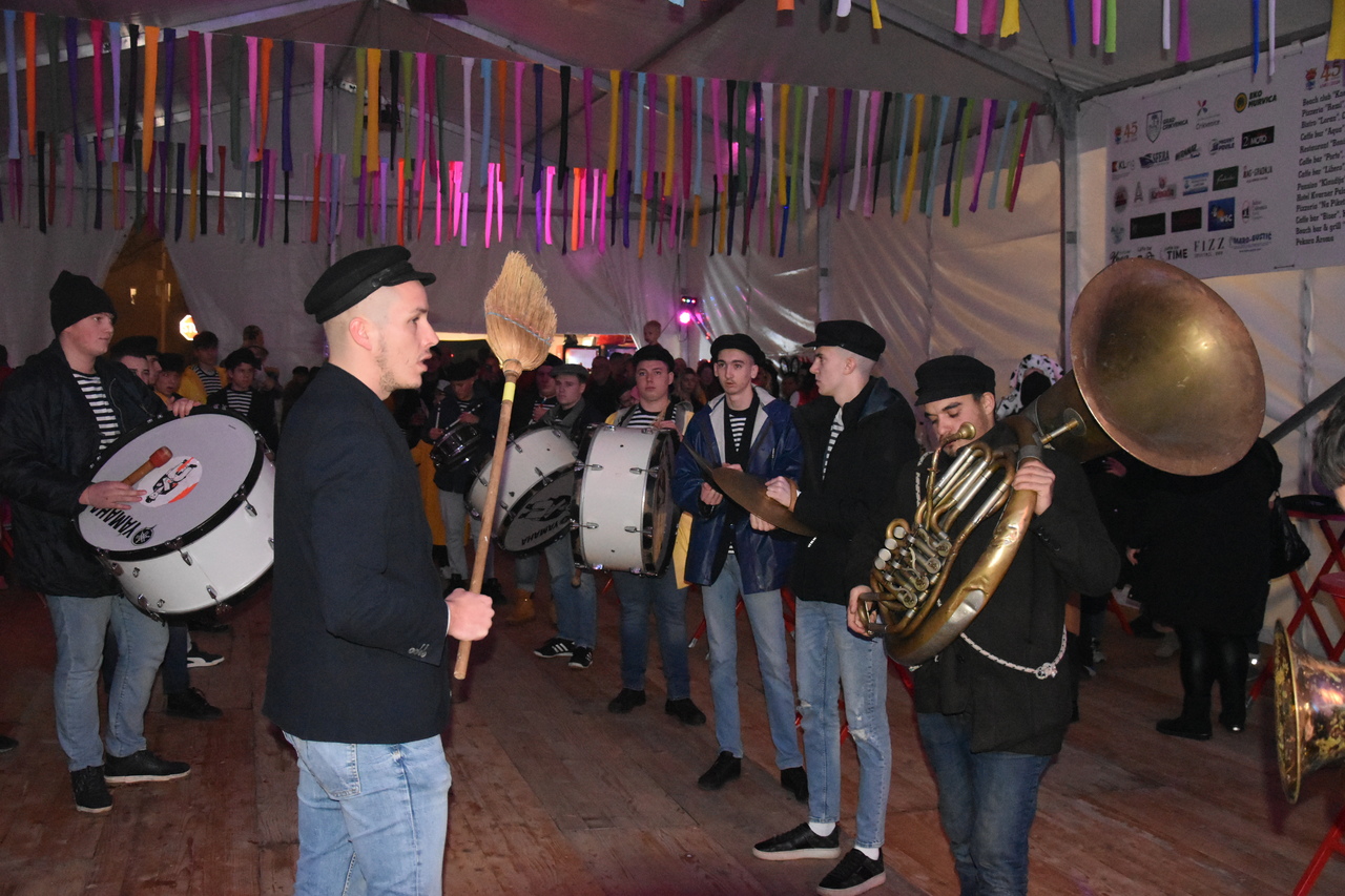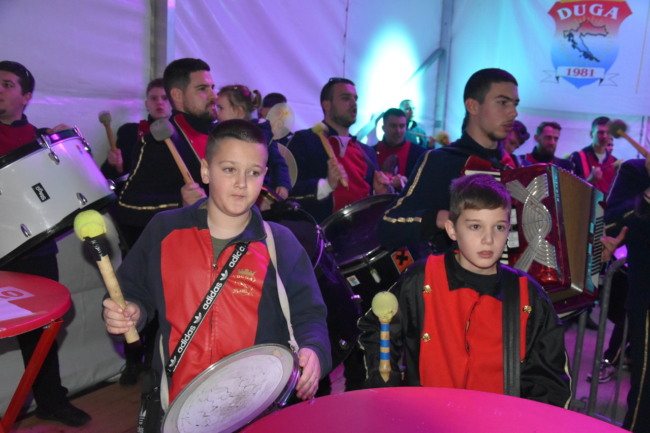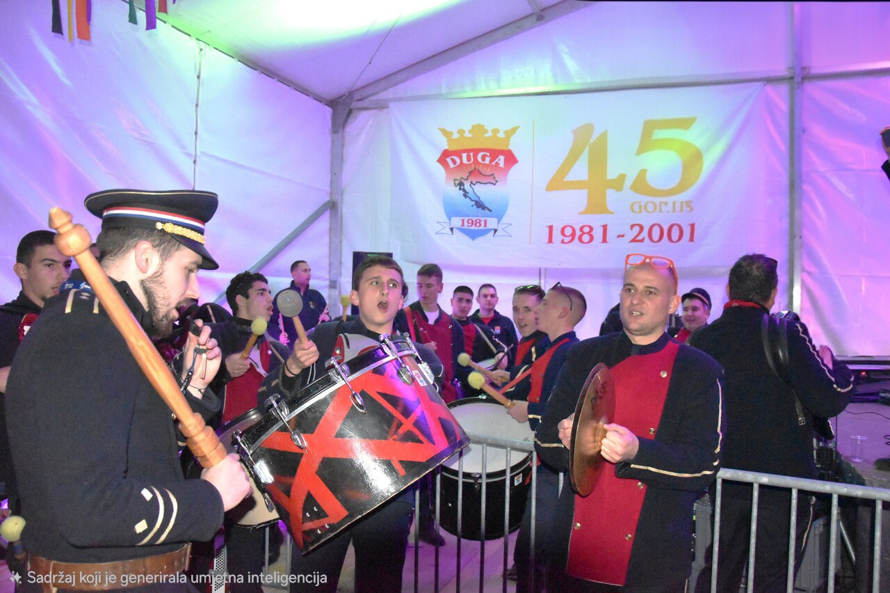 CRIKVENICA Maškare, mačkare, maškaroni, mesopustari, parade, krabulje iz Hrvatskog primorja, od Hreljina do Ledenica, došle su na Dugu uljepšati i čestitati 45. rođendan udruzi Duga. Grupa za grupom ulazila je u šator, pjesmom, bubnjevima i muzikom poželjela još toliko lijepih godina. U šatoru sve generacije Duge koja je na svoje maškarano putovanje spontano krenula 1981. godine. Veterani s Duge, crikveničkog naselja u kojem živi oko tisuću i pol stanovnika, tada nisu niti sanjali da će njihovo okupljanje prerasti u nešto što živi s Dugom i strašću prema maškarama 45 godina. Dio povijesti postat će i maškarani šator koji je prvi put podignut na Dugi. Kako je izgledala povijest Duge pročitajte u tekstu Parada Duga slavi 45. rođendan: krenulo je spontano, traperice i bijele košulje, a bubnjeve su “glumile” limenke.