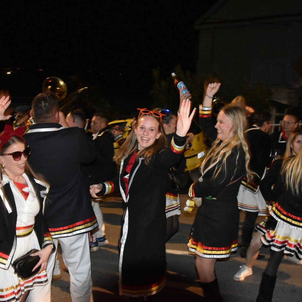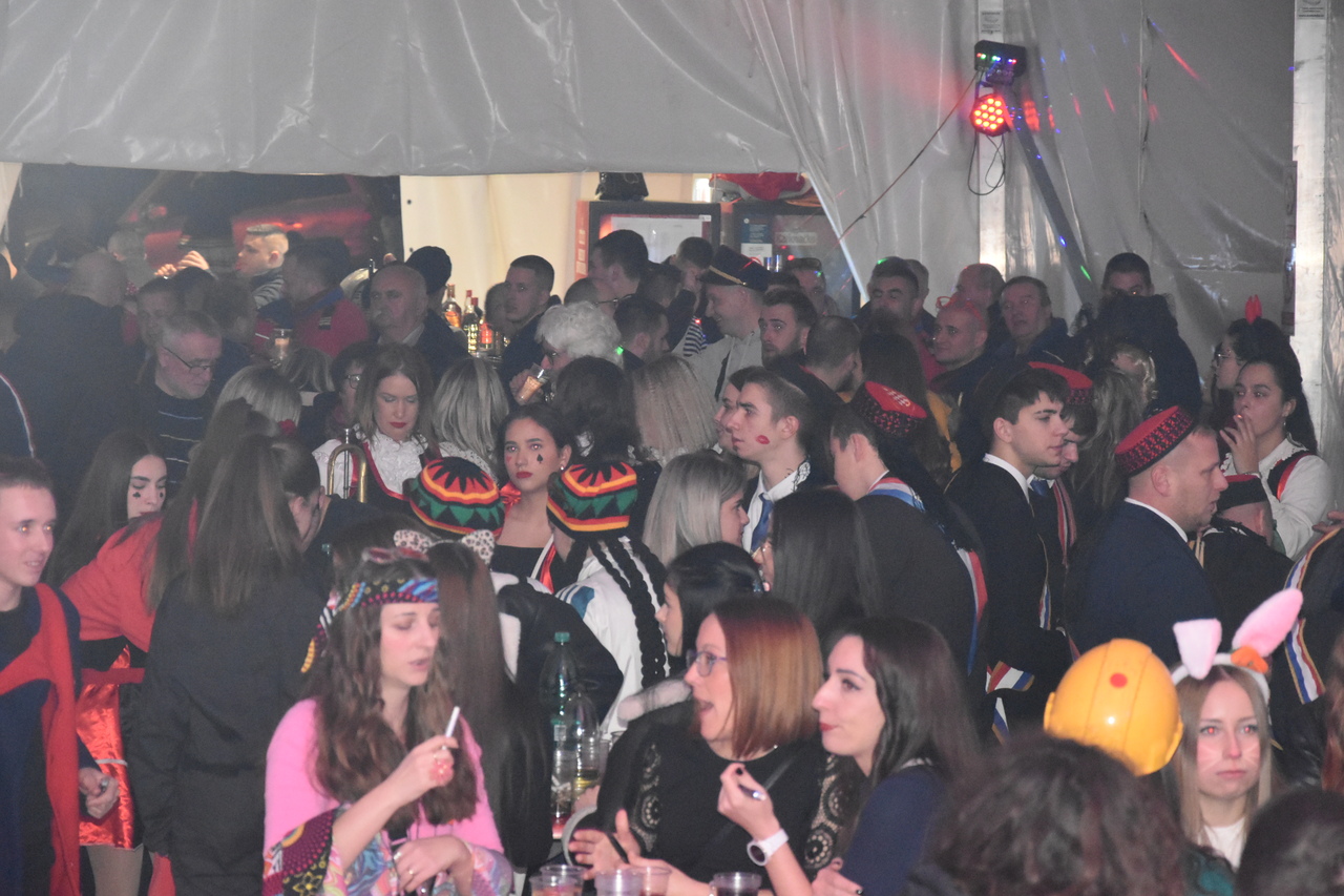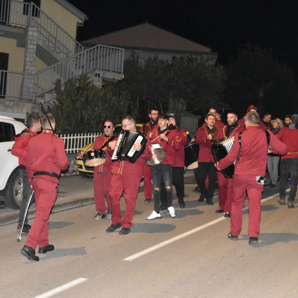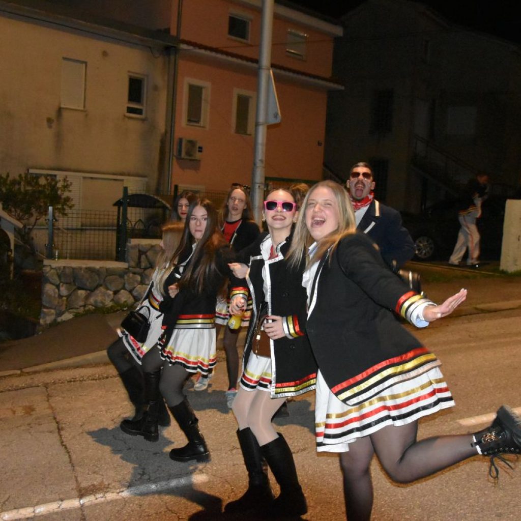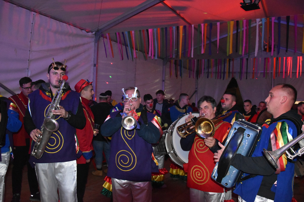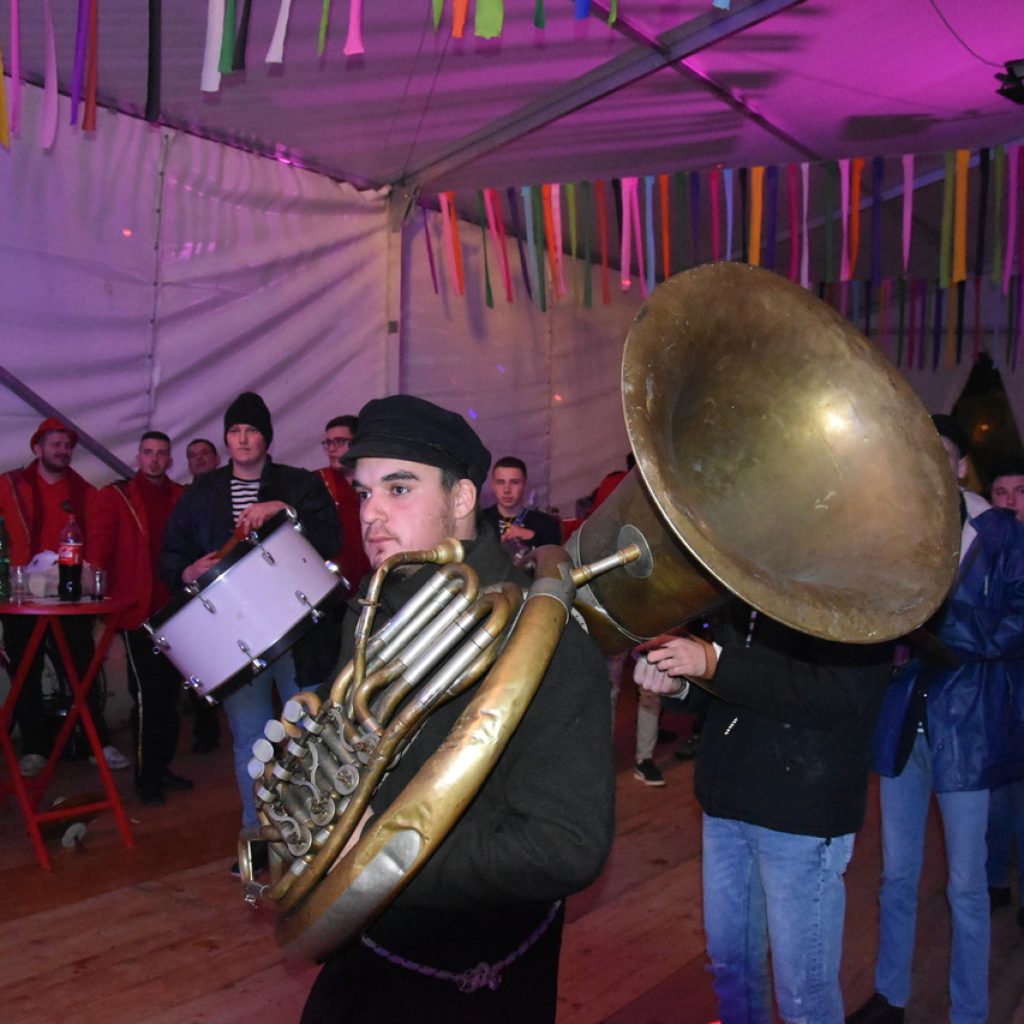CRIKVENICA Maškare, mačkare, maškaroni, mesopustari, parade, krabulje iz Hrvatskog primorja, od Hreljina do Ledenica, došle su na Dugu uljepšati i čestitati 45. rođendan udruzi Duga. Grupa za grupom ulazila je u šator, pjesmom, bubnjevima i muzikom poželjela još toliko lijepih godina. U šatoru sve generacije Duge koja je na svoje maškarano putovanje spontano krenula 1981. godine. Veterani s Duge, crikveničkog naselja u kojem živi oko tisuću i pol stanovnika, tada nisu niti sanjali da će njihovo okupljanje prerasti u nešto što živi s Dugom i strašću prema maškarama 45 godina. Dio povijesti postat će i maškarani šator koji je prvi put podignut na Dugi. Kako je izgledala povijest Duge pročitajte u tekstu Parada Duga slavi 45. rođendan: krenulo je spontano, traperice i bijele košulje, a bubnjeve su “glumile” limenke.