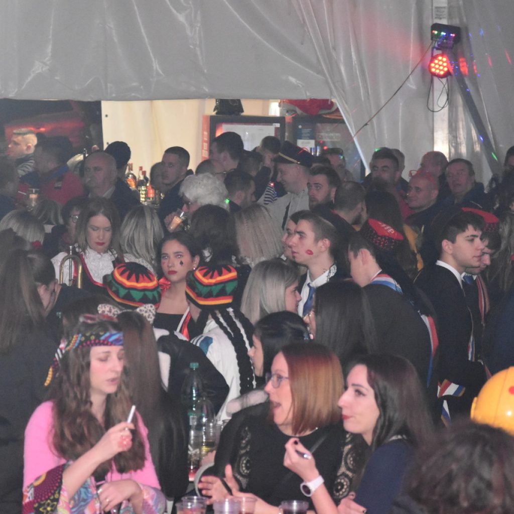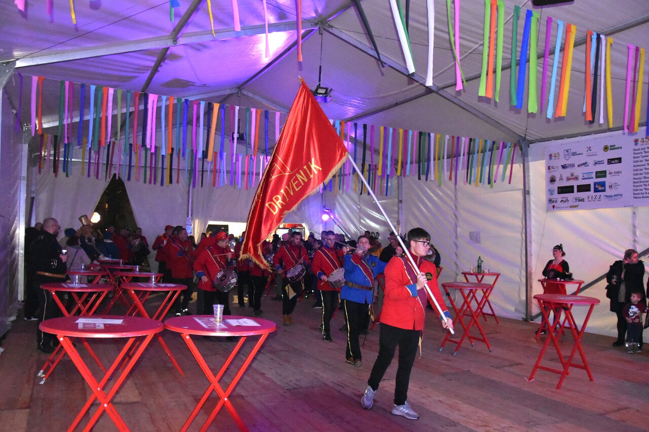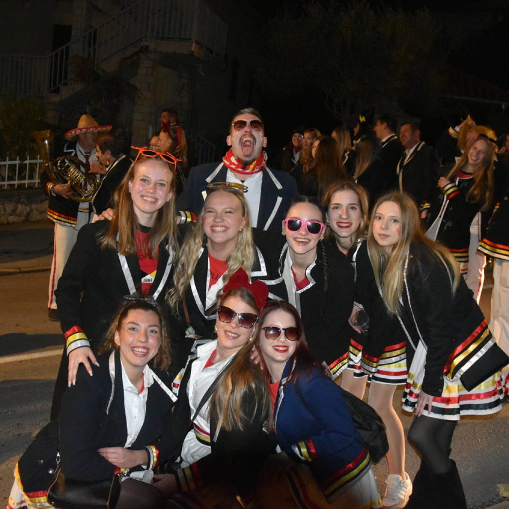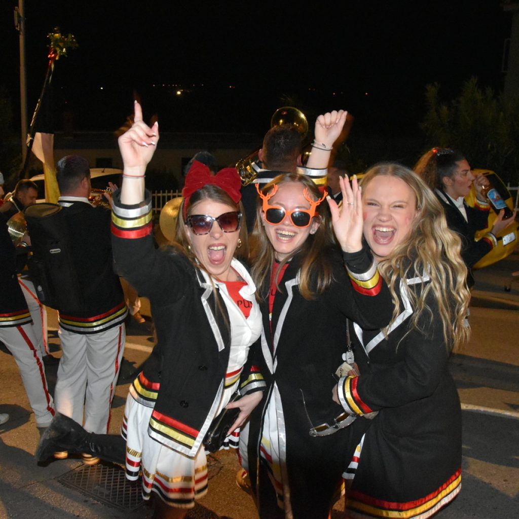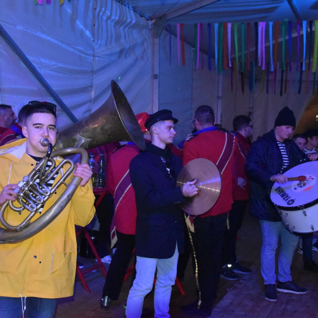 CRIKVENICA Maškare, mačkare, maškaroni, mesopustari, parade, krabulje iz Hrvatskog primorja, od Hreljina do Ledenica, došle su na Dugu uljepšati i čestitati 45. rođendan udruzi Duga. Grupa za grupom ulazila je u šator, pjesmom, bubnjevima i muzikom poželjela još toliko lijepih godina. U šatoru sve generacije Duge koja je na svoje maškarano putovanje spontano krenula 1981. godine. Veterani s Duge, crikveničkog naselja u kojem živi oko tisuću i pol stanovnika, tada nisu niti sanjali da će njihovo okupljanje prerasti u nešto što živi s Dugom i strašću prema maškarama 45 godina. Dio povijesti postat će i maškarani šator koji je prvi put podignut na Dugi. Kako je izgledala povijest Duge pročitajte u tekstu Parada Duga slavi 45. rođendan: krenulo je spontano, traperice i bijele košulje, a bubnjeve su “glumile” limenke.