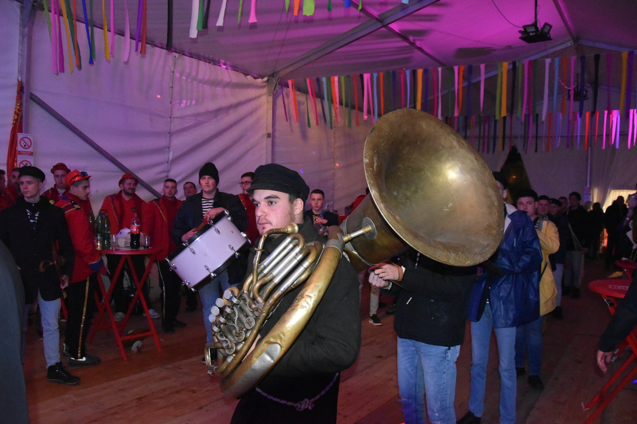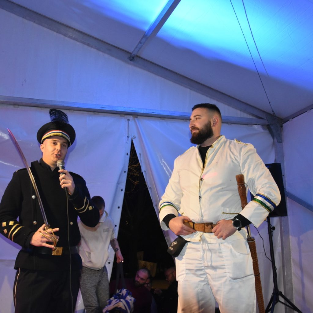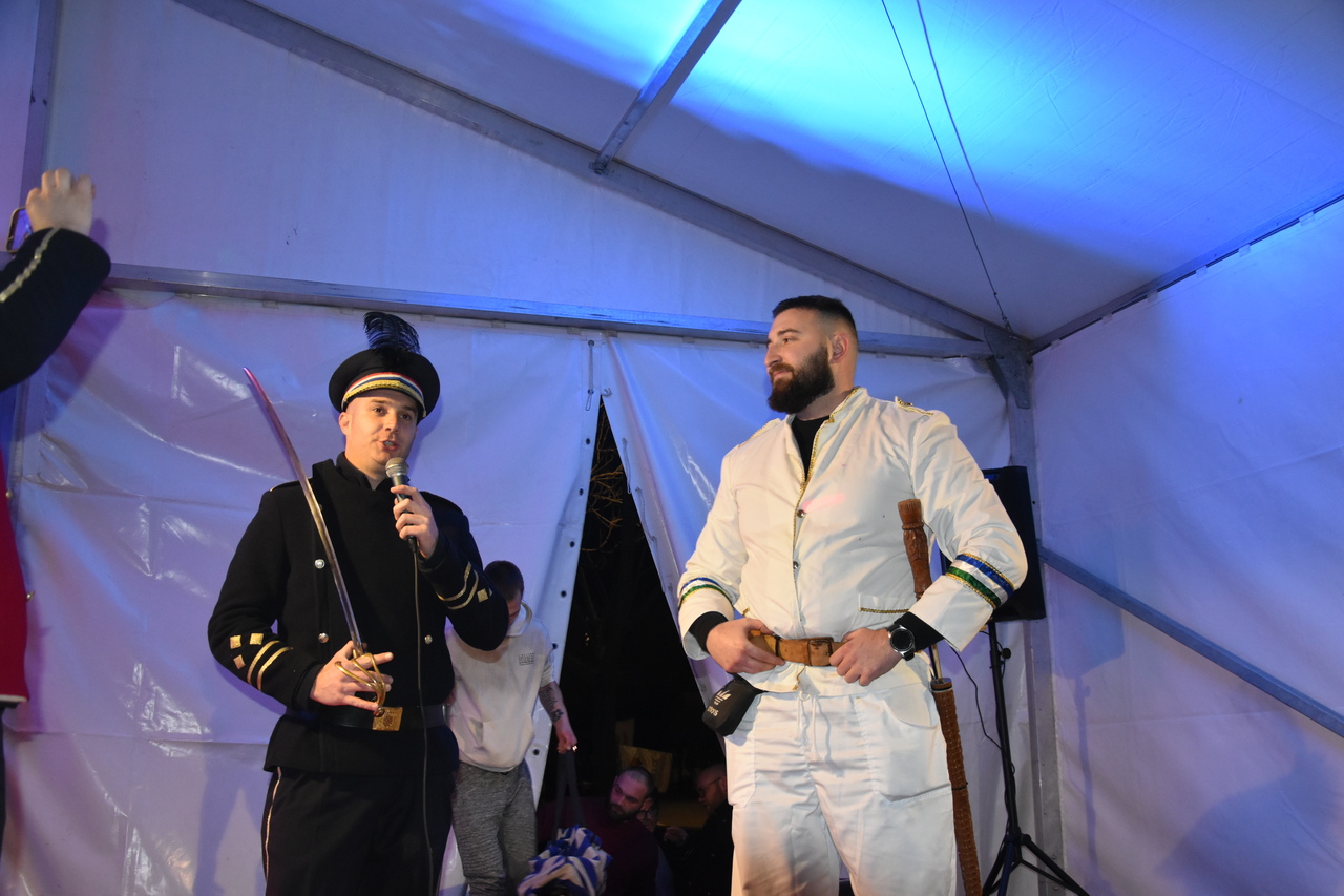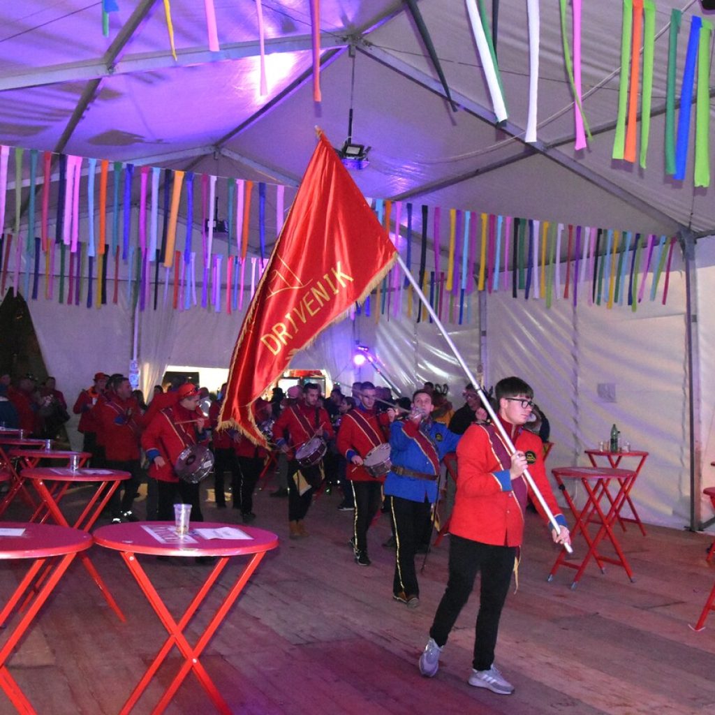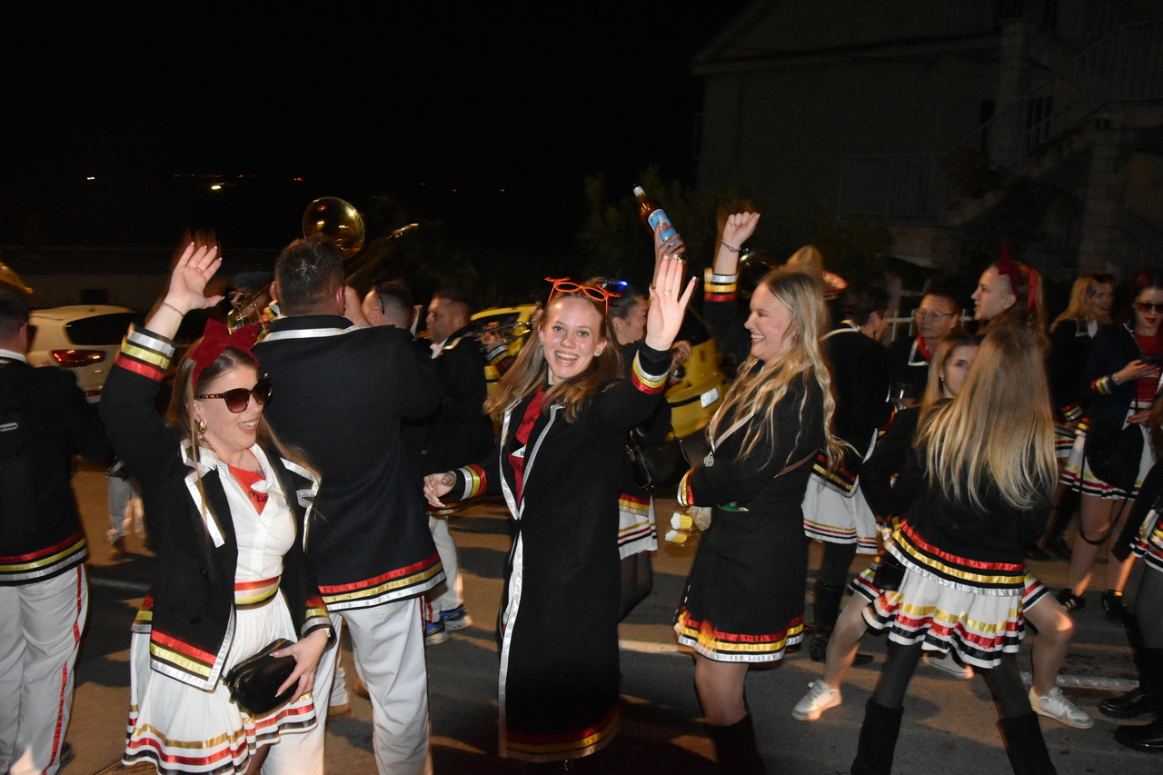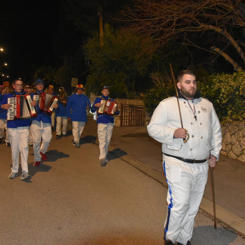 CRIKVENICA Maškare, mačkare, maškaroni, mesopustari, parade, krabulje iz Hrvatskog primorja, od Hreljina do Ledenica, došle su na Dugu uljepšati i čestitati 45. rođendan udruzi Duga. Grupa za grupom ulazila je u šator, pjesmom, bubnjevima i muzikom poželjela još toliko lijepih godina. U šatoru sve generacije Duge koja je na svoje maškarano putovanje spontano krenula 1981. godine. Veterani s Duge, crikveničkog naselja u kojem živi oko tisuću i pol stanovnika, tada nisu niti sanjali da će njihovo okupljanje prerasti u nešto što živi s Dugom i strašću prema maškarama 45 godina. Dio povijesti postat će i maškarani šator koji je prvi put podignut na Dugi. Kako je izgledala povijest Duge pročitajte u tekstu Parada Duga slavi 45. rođendan: krenulo je spontano, traperice i bijele košulje, a bubnjeve su “glumile” limenke.