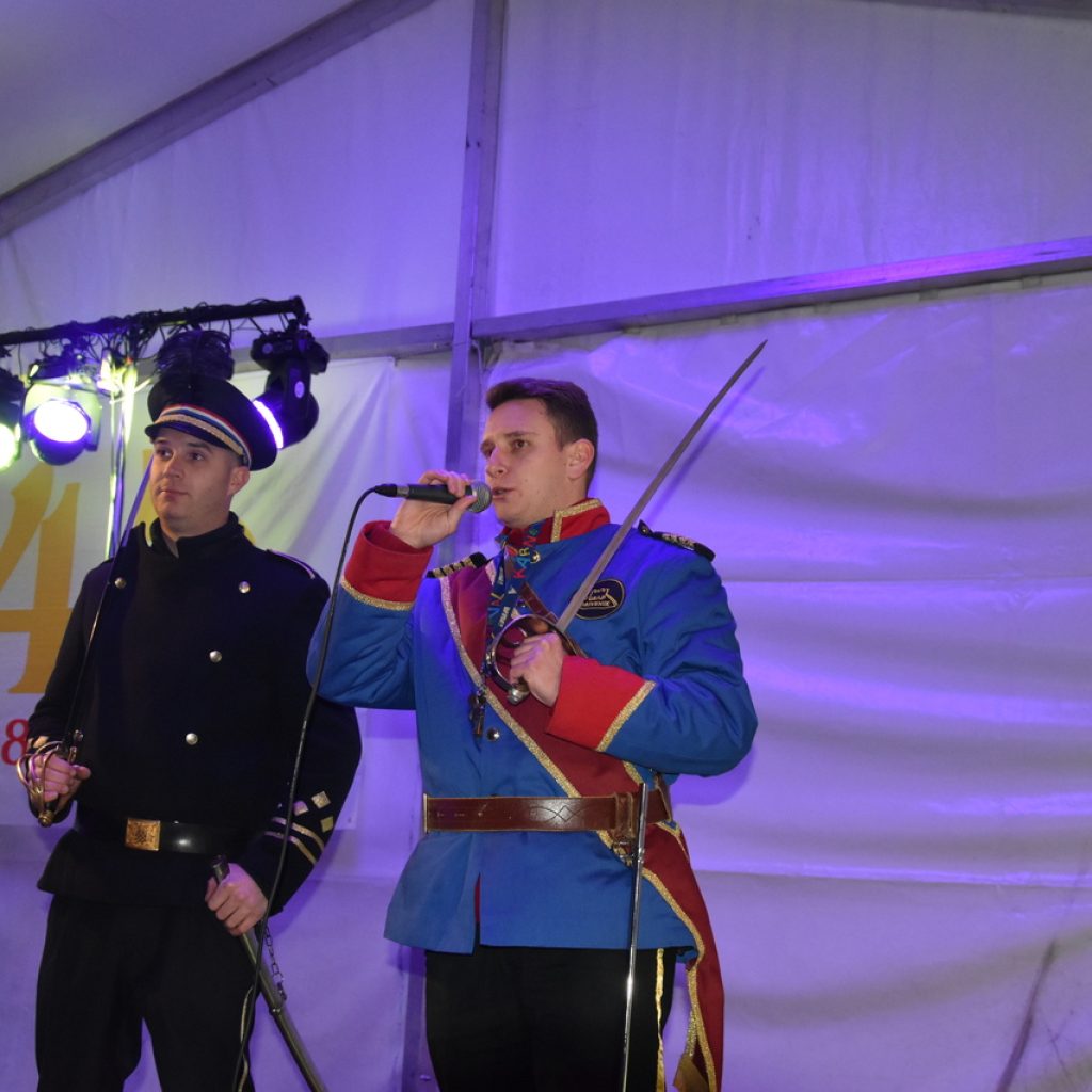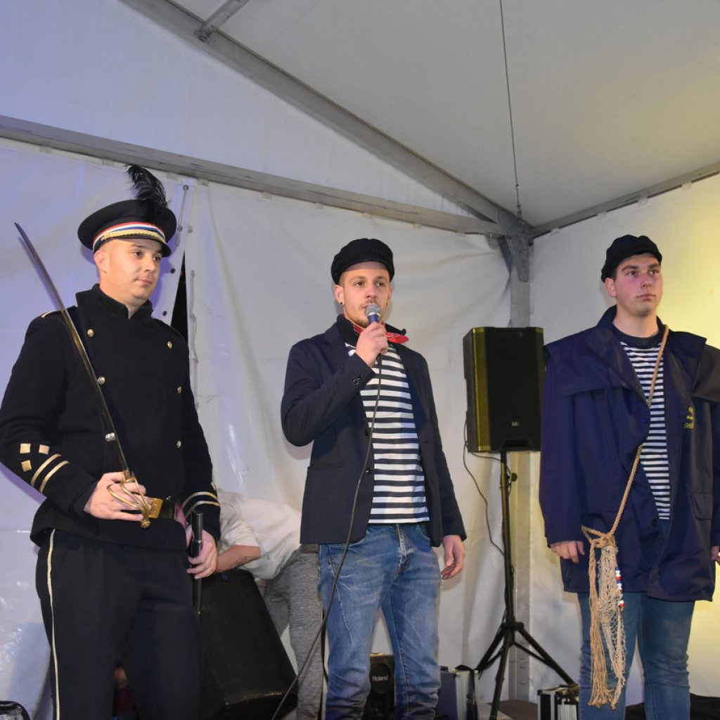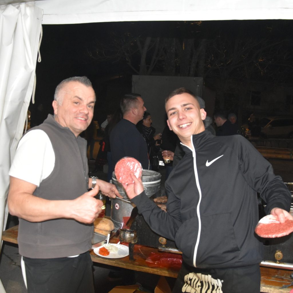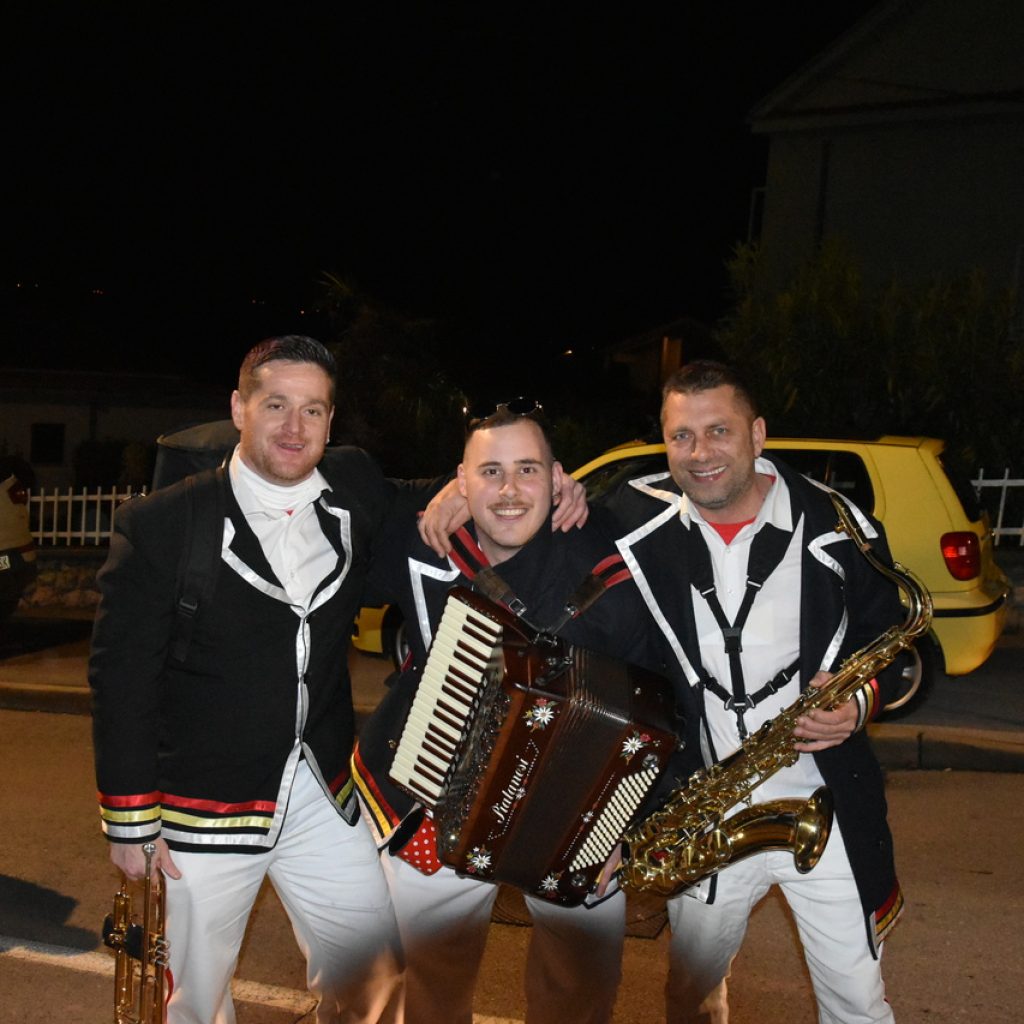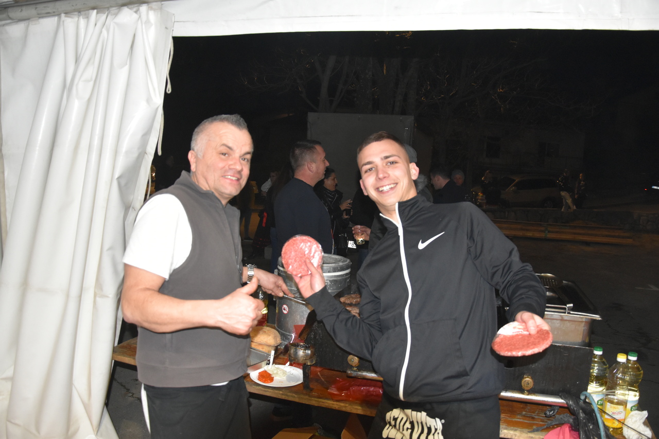 Na bini su se izmjenjivali čestitari. Domaćini predvođeni kapetanom Aldom Plukavcem neumorno su primali čestitke. Na popisu gostiju Čočmani s Hreljina, Mesopustari Kraljevice, maškare Dol Križišće, Šmričke mačkare, Matkovići, Jakovarske krabulje, Selačka mantinjada, Gornji Kraj, Driveničke krabulje, Barilac Tribalj, Centralna glazba Grižane, bribirska parada, novljanski mesopustari i ledenički maškaroni. Rođendansko slavlje nije moglo proći bez crikveničke svite. Meštar Bene, stara i aktualna svita predali su čestitke Udruzi za narodne običaje Duga za čuvanje običaja i sveopćeg veselja. Čestitka će naći svoje mjestu na zidu prostorije koje je napokon dobila udruga u novom domu Mjesnog odbora Crikvenica Zapad. Nakon pozdravljanja, uslijedila je zabava uz grupu Fiesta.