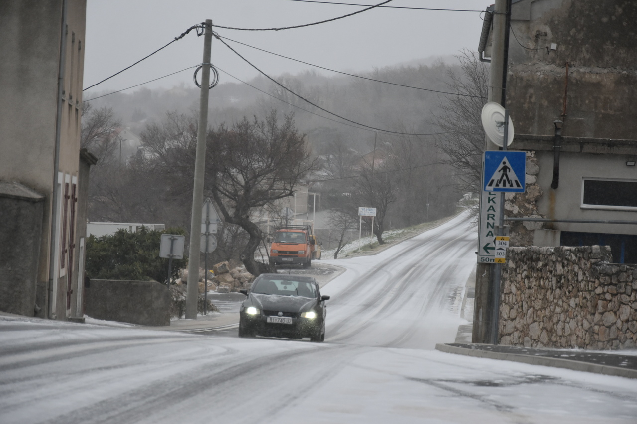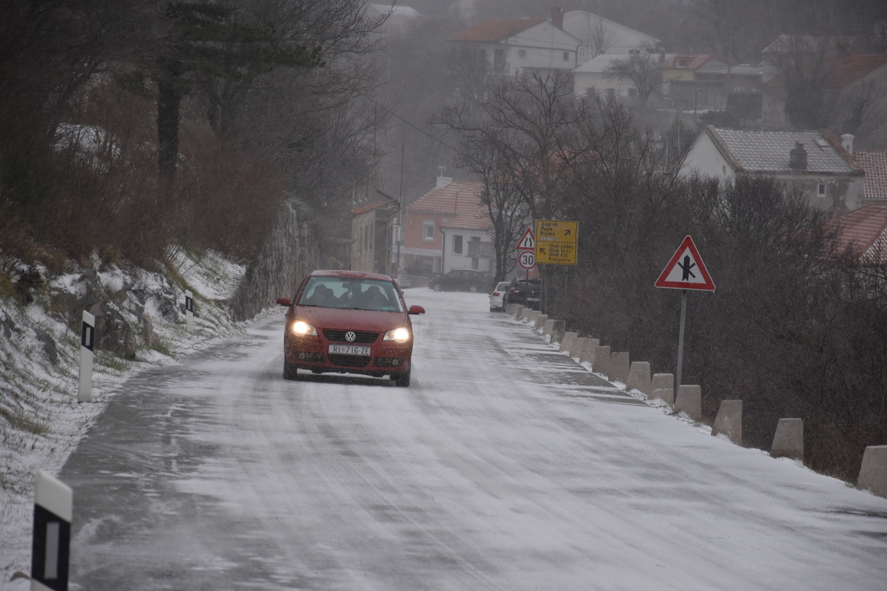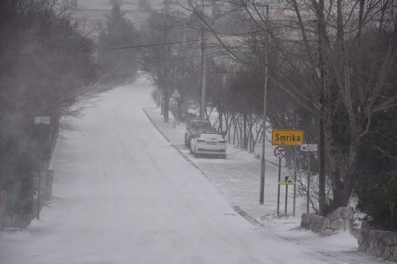 Takva je situacija na prometnicama. Tko se nije zaputio prema višim predjelima, mogao je uživati u bijelim radostima. Donosimo fotografije s Križišća, Šmrike, Jadranske magistrale, Drivenika, Triblja, Grižana, Bribira, Krmpote Polja, Senja, Krivog Puta.