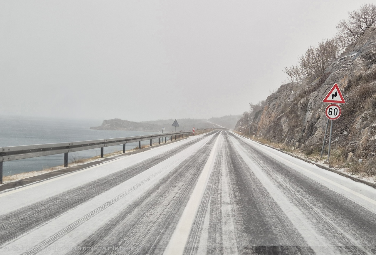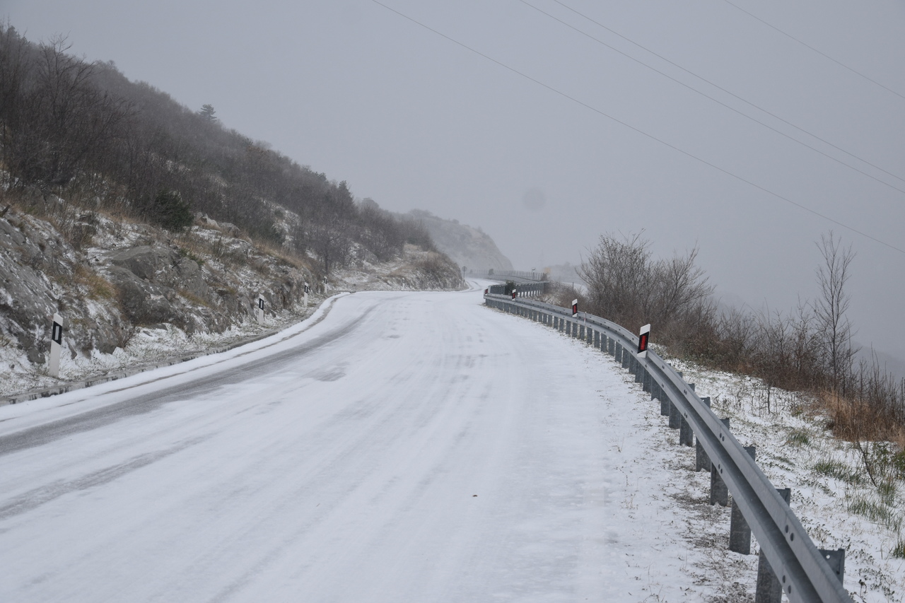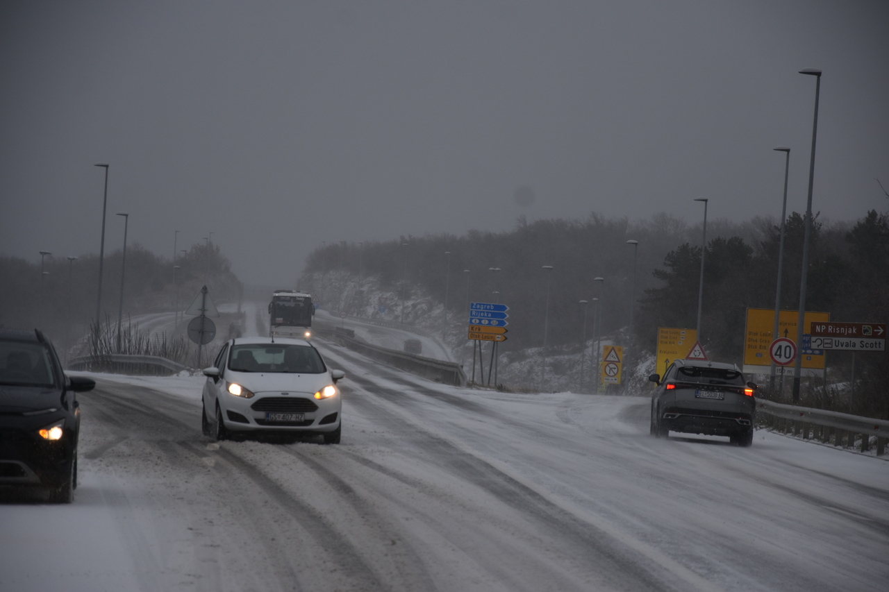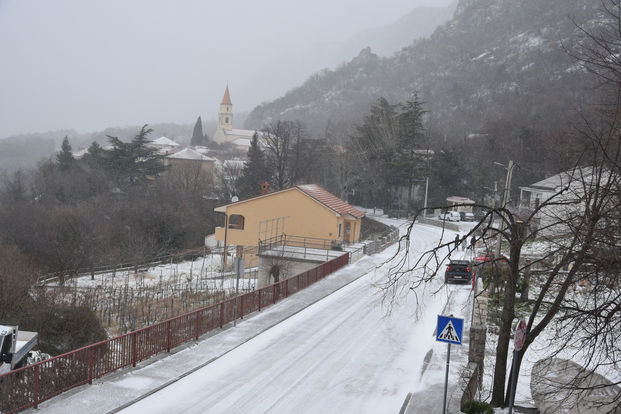 Takva je situacija na prometnicama. Tko se nije zaputio prema višim predjelima, mogao je uživati u bijelim radostima. Donosimo fotografije s Križišća, Šmrike, Jadranske magistrale, Drivenika, Triblja, Grižana, Bribira, Krmpote Polja, Senja, Krivog Puta.
