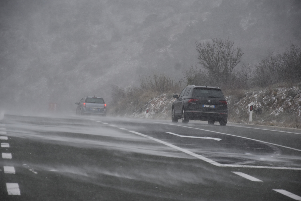 Zbog olujnog vjetra, poledice i snježnih nanosa od Senja do Svete Marije Magdalene zabrana je prometa za sva vozila, javlja HAK. Cesta Sveti Juraj – Krasno je zbog snježnih nanosa i dalje zatvorena za sav promet. Između Novog Vinodolskog i Senja promet je dopušten samo osobnim vozilima. Praktično nema ceste u Hrvatskom primorju na koju se može bez zimske opreme.
