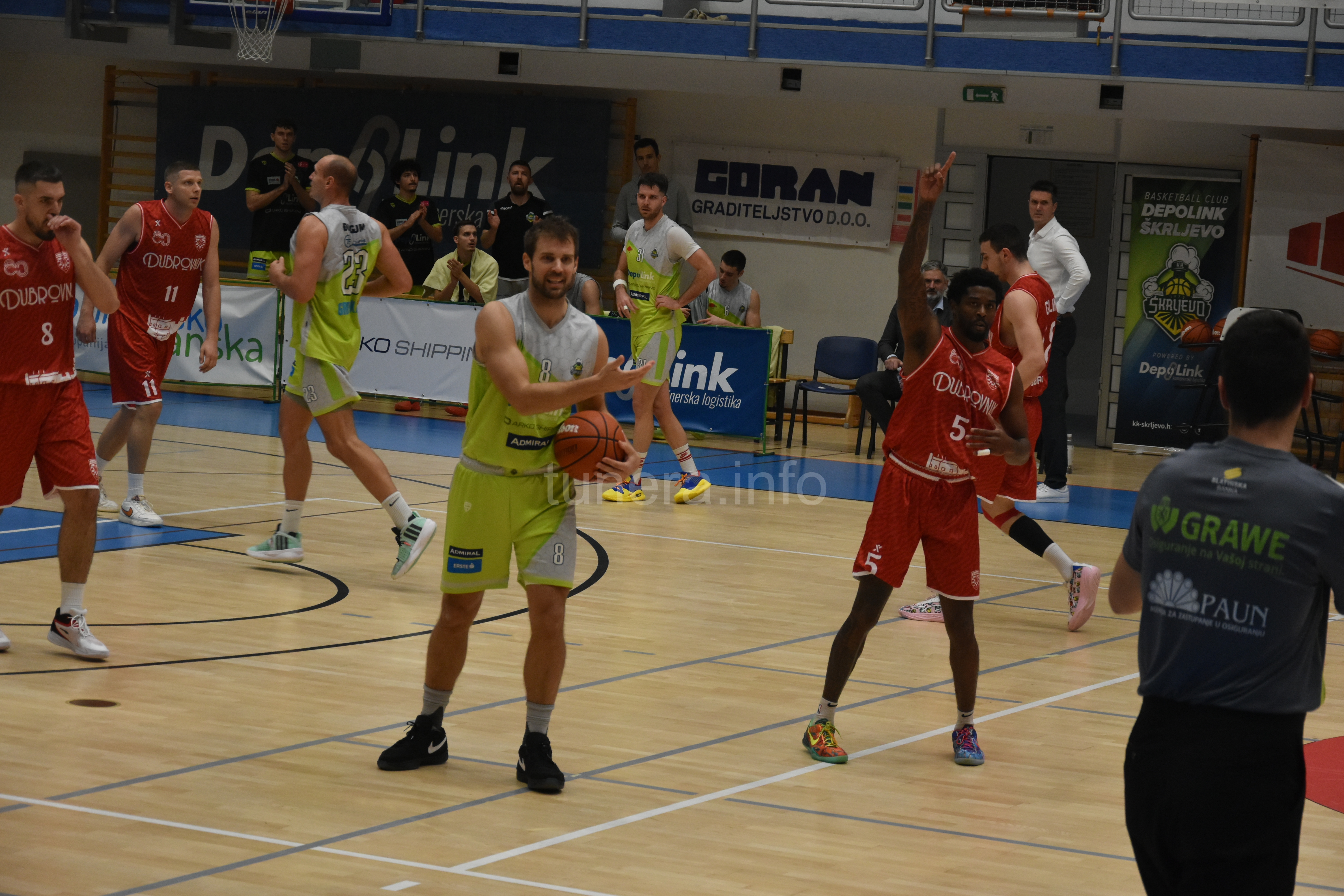 KOSTRENA Depolink Škrljevo pobijedilo je u kup ogledu premijerligaša Dubrovnika 83:74 (23:19, 21:17, 19:19, 20:19). Od samog starta Zeleni su pred stotinjak gledatelja u Kostreni krenuli odlučno i odlično. U prvoj četvrtini čak pet trica domaćina, tri Konjevića i dvije Cetine. U jednom trenutku DepoLink Škrljevo ima devet koševa plusa. U drugoj četvrtini gosti dva puta uspijevaju doći do minus četiri, a Zeleni jednom bježe na devet koševa prednosti. Na poluvremenu osam razlike. U trećoj četvrtini razlika šeće od četiri do devet koševa. U posljednju četvrtinu domaćini ulaze s plusom od osam koševa. Dubrovnik nikako ne može prići domaćinima više od četiri koša razlike. No, četiri minute prije kraja gosti prijete, rezultat je 71:69. Drže se na tri-četiri koša. Utakmicu rješava trica Pilepića 1:20 prije kraja. Rezultat je 80:74 i DepoLink Škrljevo ulazi u final 8 kupa. Kod pobjednika su Konjević, Pilepić i Đugum postigli po 21 koš. Kod gostiju najefikasniji Andrić s 16 koševa.