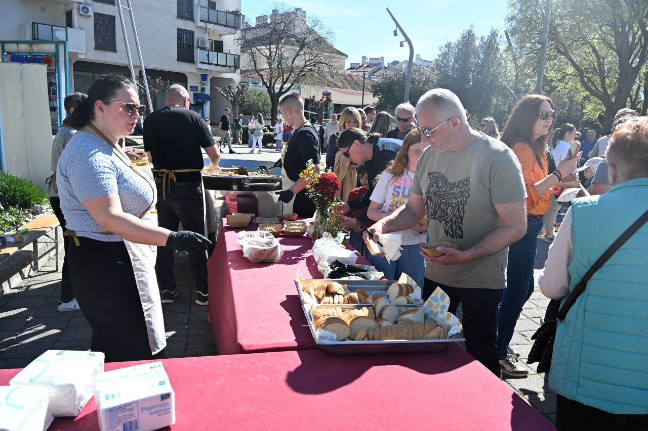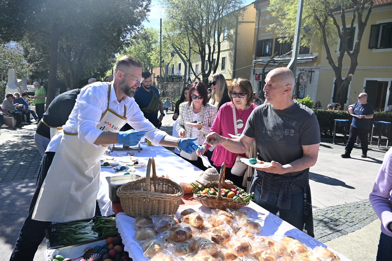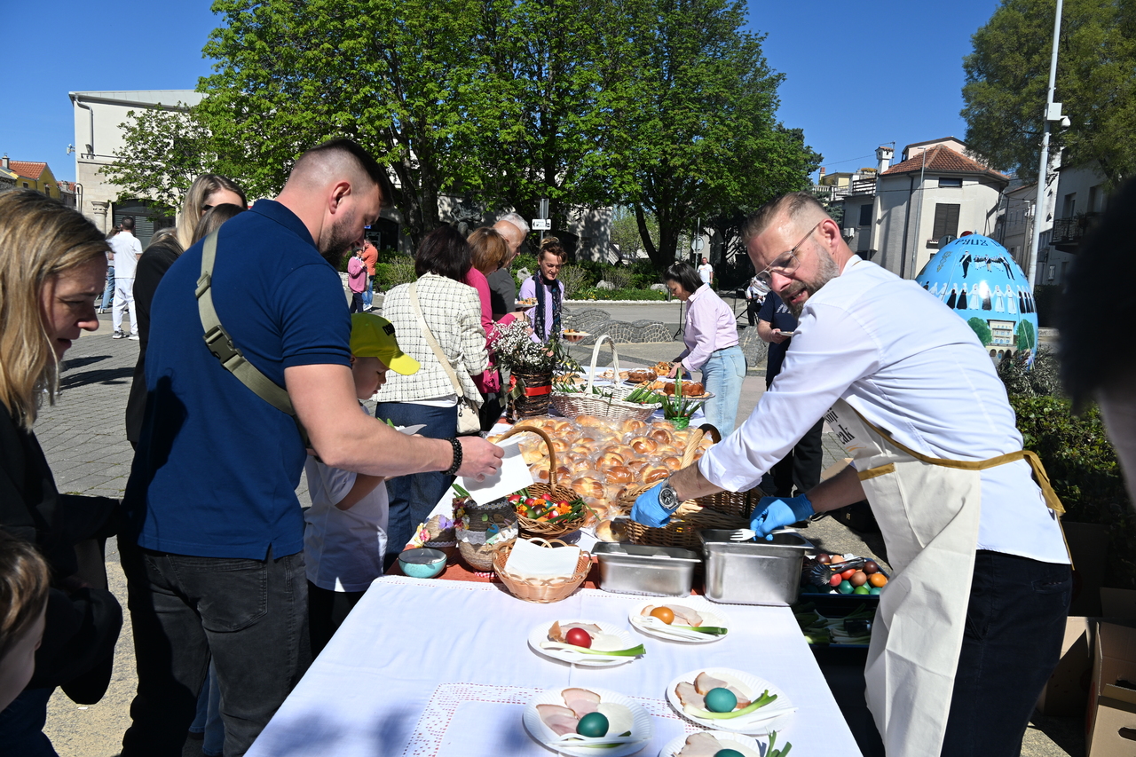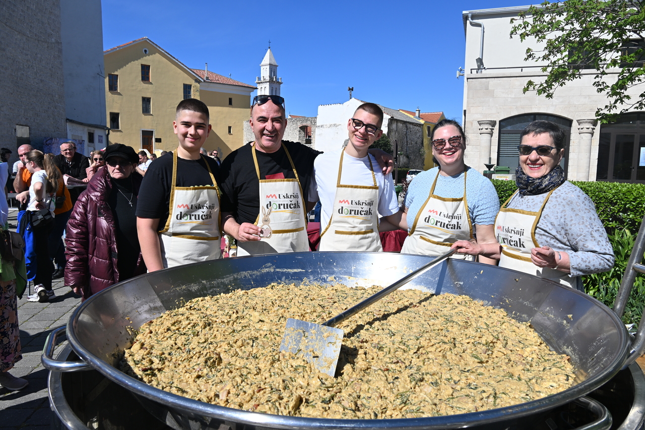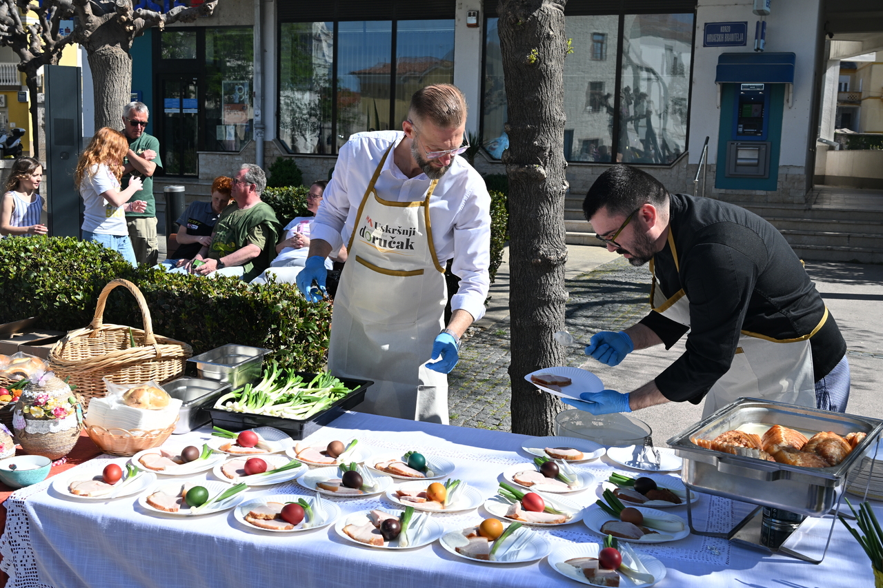 NOVI VINODOLSKI Centar Novog Vinodolskog ispunili su posjetitelji Uskrsnog doručka koji je organizirala TZ Grada Novog Vinodolskog. Novljani su na Korzo hrvatskih branitelja iznijeli 800 porcija. Na vrhu Korza ekipa Svemira Rakara pobrinula se za meni posložen od šunke, mladog luka i kuhanih jaja. Ispred doma ekipa Lorena Jovanovića pripremila je u velikoj padeli fritaju od tisuću jaja i šparogama nabranim u okolici Novog. Ove godine Lorenu i ekipi je bilo lakše jer je u pomoć priskočio uskrsni Zeko. Zasladilo se pincama, kolačima, Tonkinim fritulama koje Tonka priprema po receptu prabake Novljanke Marte. Zasvirala je grupa Dinamika. Djeca su manje pažnje posvećivala meniju, a više animacijskom programu koji je uključivao crtanje i oslikavanje lica. Najviše posla imao je uskrsni Zeko. Nakon što je pomogao u pripremi fritaje, strpljenjem u stilu velikog Ćire Blaževića fotografirao se sa svima koji su poželjeli zajedničku fotografija sa zvijezdom novljanskog Uskrsnog doručka. A vrijeme? Kao naručeno. Lipanjsko. Nevjerojatno nakon bure koja je u srijedu rušila svaku pomisao o izlasku na otvoreno.