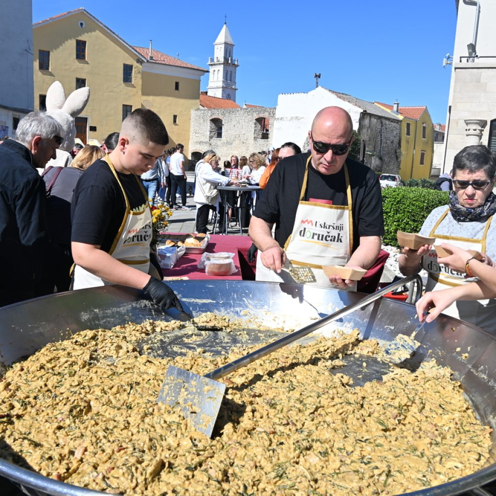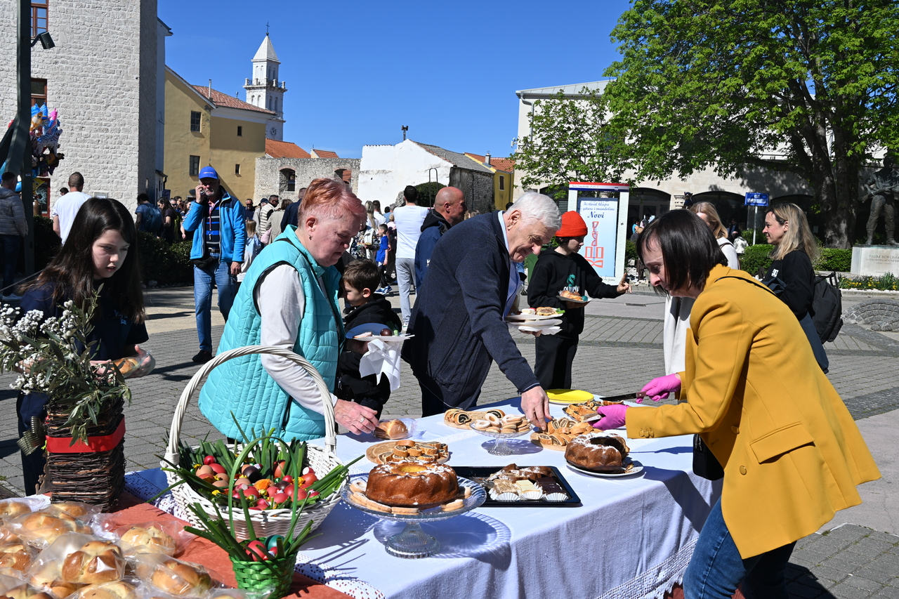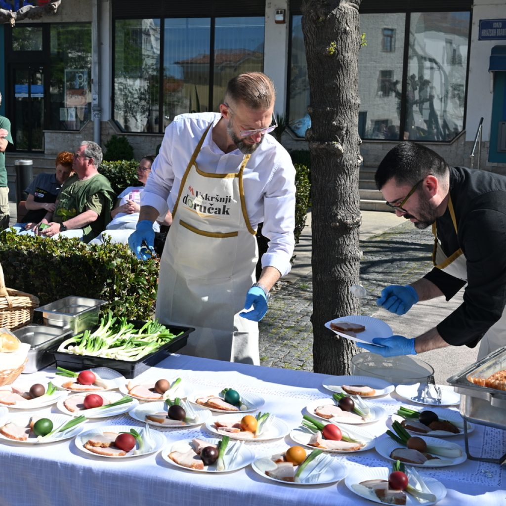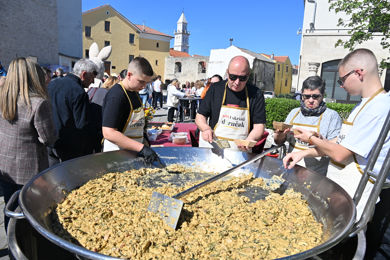 NOVI VINODOLSKI Centar Novog Vinodolskog ispunili su posjetitelji Uskrsnog doručka koji je organizirala TZ Grada Novog Vinodolskog. Novljani su na Korzo hrvatskih branitelja iznijeli 800 porcija. Na vrhu Korza ekipa Svemira Rakara pobrinula se za meni posložen od šunke, mladog luka i kuhanih jaja. Ispred doma ekipa Lorena Jovanovića pripremila je u velikoj padeli fritaju od tisuću jaja i šparogama nabranim u okolici Novog. Ove godine Lorenu i ekipi je bilo lakše jer je u pomoć priskočio uskrsni Zeko. Zasladilo se pincama, kolačima, Tonkinim fritulama koje Tonka priprema po receptu prabake Novljanke Marte. Zasvirala je grupa Dinamika. Djeca su manje pažnje posvećivala meniju, a više animacijskom programu koji je uključivao crtanje i oslikavanje lica. Najviše posla imao je uskrsni Zeko. Nakon što je pomogao u pripremi fritaje, strpljenjem u stilu velikog Ćire Blaževića fotografirao se sa svima koji su poželjeli zajedničku fotografija sa zvijezdom novljanskog Uskrsnog doručka. A vrijeme? Kao naručeno. Lipanjsko. Nevjerojatno nakon bure koja je u srijedu rušila svaku pomisao o izlasku na otvoreno.