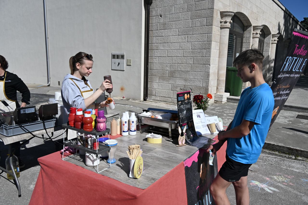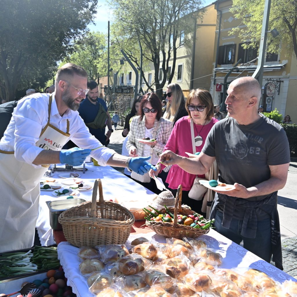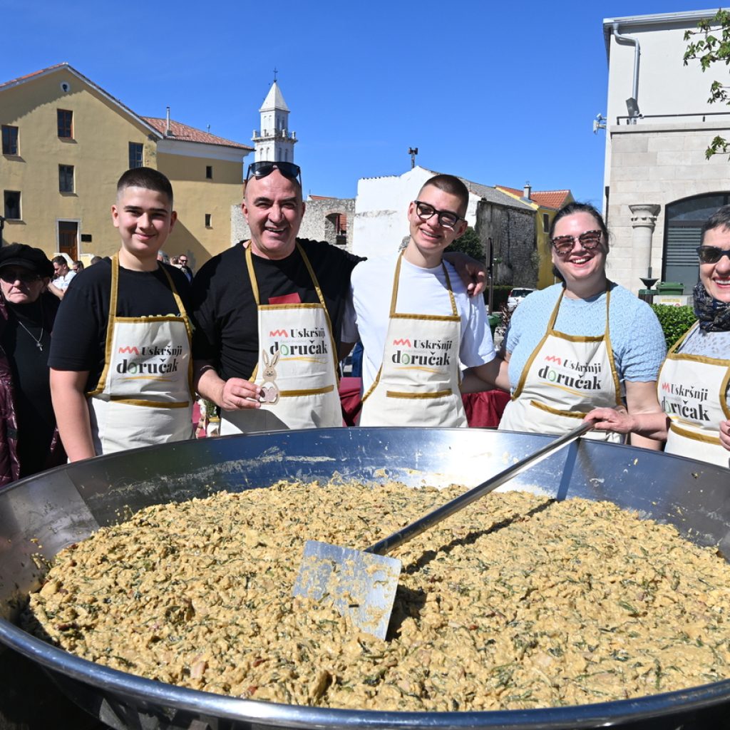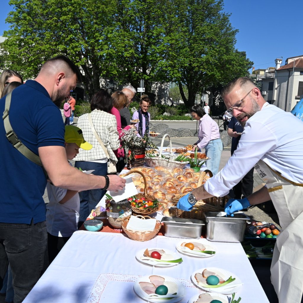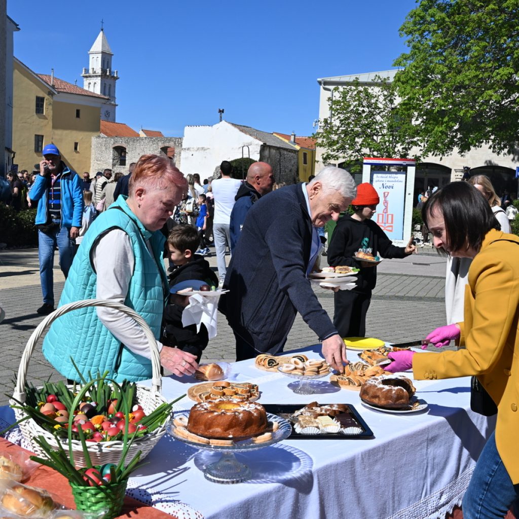 NOVI VINODOLSKI Centar Novog Vinodolskog ispunili su posjetitelji Uskrsnog doručka koji je organizirala TZ Grada Novog Vinodolskog. Novljani su na Korzo hrvatskih branitelja iznijeli 800 porcija. Na vrhu Korza ekipa Svemira Rakara pobrinula se za meni posložen od šunke, mladog luka i kuhanih jaja. Ispred doma ekipa Lorena Jovanovića pripremila je u velikoj padeli fritaju od tisuću jaja i šparogama nabranim u okolici Novog. Ove godine Lorenu i ekipi je bilo lakše jer je u pomoć priskočio uskrsni Zeko. Zasladilo se pincama, kolačima, Tonkinim fritulama koje Tonka priprema po receptu prabake Novljanke Marte. Zasvirala je grupa Dinamika. Djeca su manje pažnje posvećivala meniju, a više animacijskom programu koji je uključivao crtanje i oslikavanje lica. Najviše posla imao je uskrsni Zeko. Nakon što je pomogao u pripremi fritaje, strpljenjem u stilu velikog Ćire Blaževića fotografirao se sa svima koji su poželjeli zajedničku fotografija sa zvijezdom novljanskog Uskrsnog doručka. A vrijeme? Kao naručeno. Lipanjsko. Nevjerojatno nakon bure koja je u srijedu rušila svaku pomisao o izlasku na otvoreno.