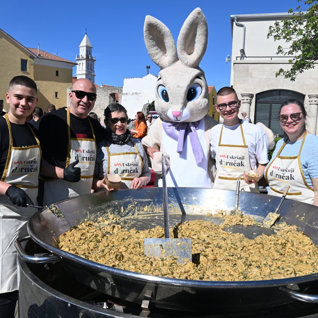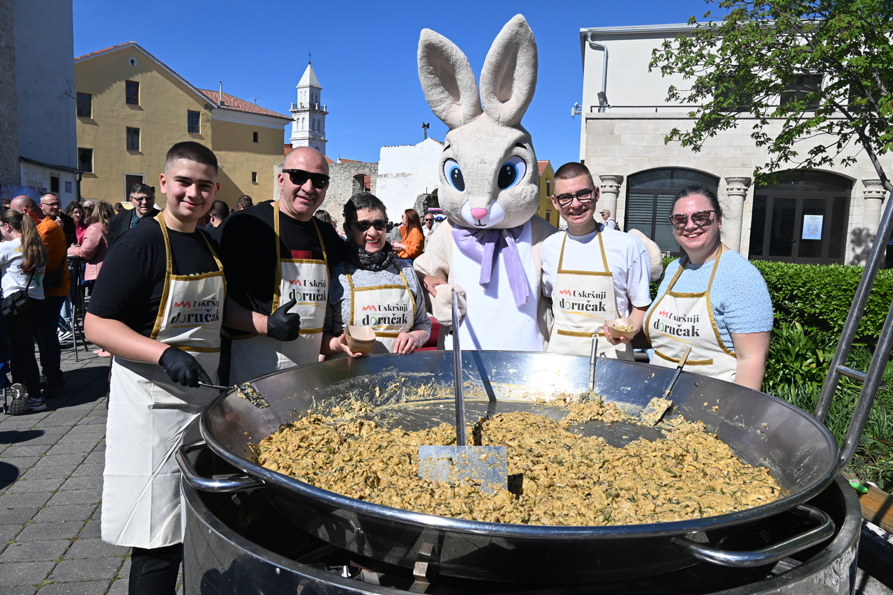 Novi Vinodolski  Uskrsni doručak u Novom: Zeko i Novljani počastili s 800 porcija šunke, jaja i fritaje od šparoga