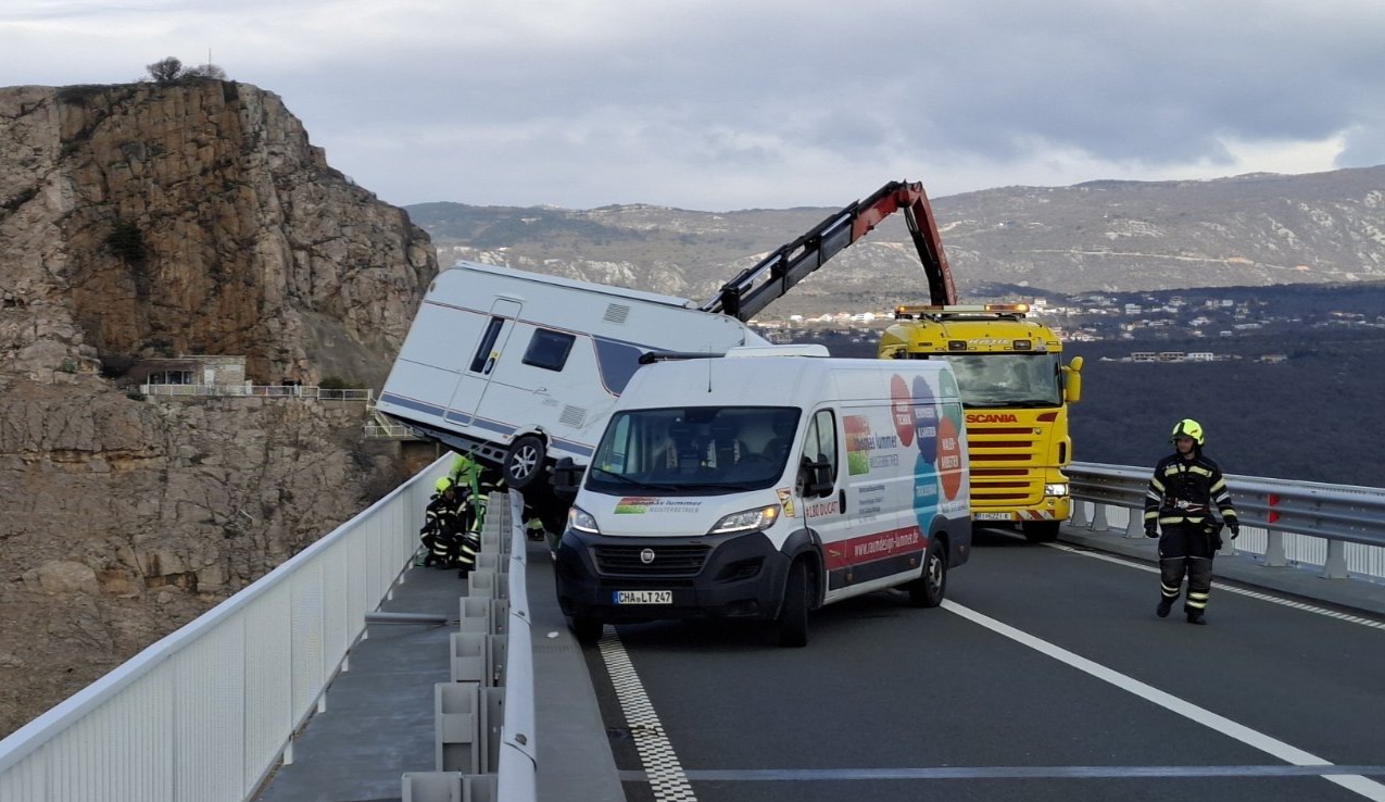 Vozač čija je kućica ostala visjeti na Krčkom mostu platio 90 eura kazne?