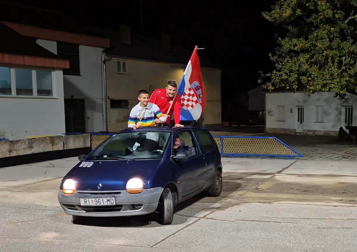 Drivenički boćari dočekani su na jogu u centru mjesta, odakle bi do svojih domova gotovo mogli baciti boću. Prvaci često dolaze na proslave u kabrioletima. Tako su na doček stigli Filip i Žarko. Za volanom Twinga Žarkov tata Žarko.